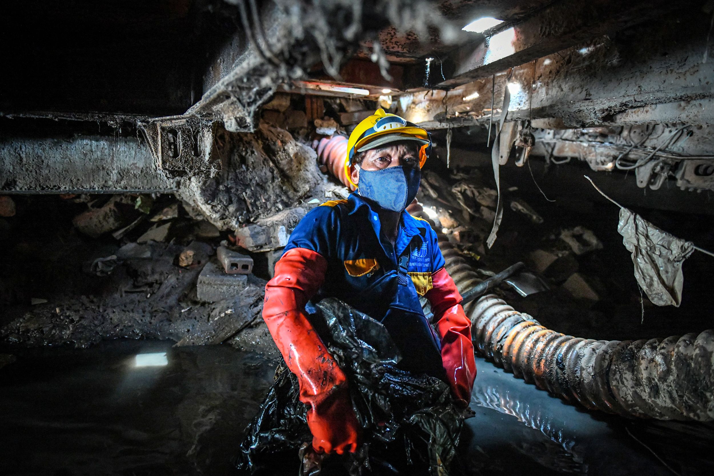 “Ai cũng nghĩ cống là để thoát nước, nhưng cống ở Hà Nội thì không phải như thế. Đó là một cái túi chứa rác khổng lồ và khủng khiếp”, vừa khom mình chui sâu vào bên trong, người thợ 55 tuổi kể.