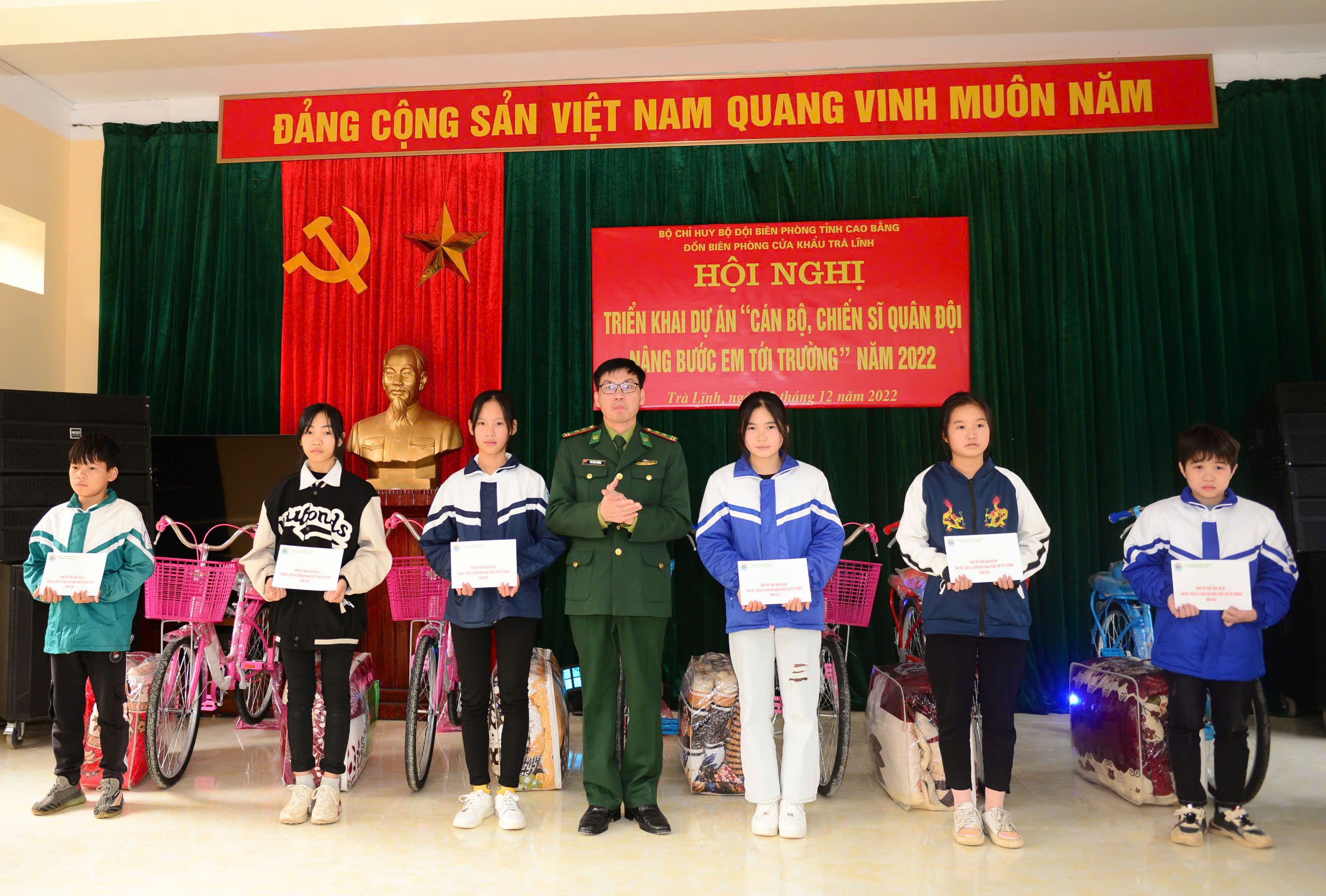 Là đơn vị đầu tiên triển khai thực hiện chương trình, từ năm 2014 đến nay Đồn Biên phòng cửa khẩu quốc tế Trà Lĩnh, Bộ đội Biên phòng tỉnh Cao Bằng đã trực tiếp nhận đỡ đầu 22 cháu theo Chương trình “Nâng bước em tới trường – con nuôi đồn Biên phòng”. Còn Đồn Biên phòng Lũng Cú, Bộ đội Biên phòng tỉnh Hà Giang cũng đã nhận đỡ đầu cho 15 trường hợp từ năm 2016 đến nay, trong đó có nhiều cháu người Mông có hoàn cảnh gia đình đặc biệt khó khăn.