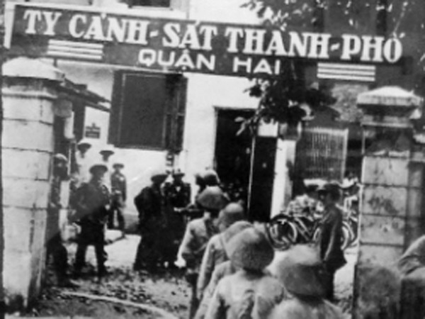Lực lượng Công an tiếp quản Ty Cảnh sát thành phố (nay là trụ sở Công an quận Hoàn Kiếm). Ảnh tư liệu anninhthudo.vn
