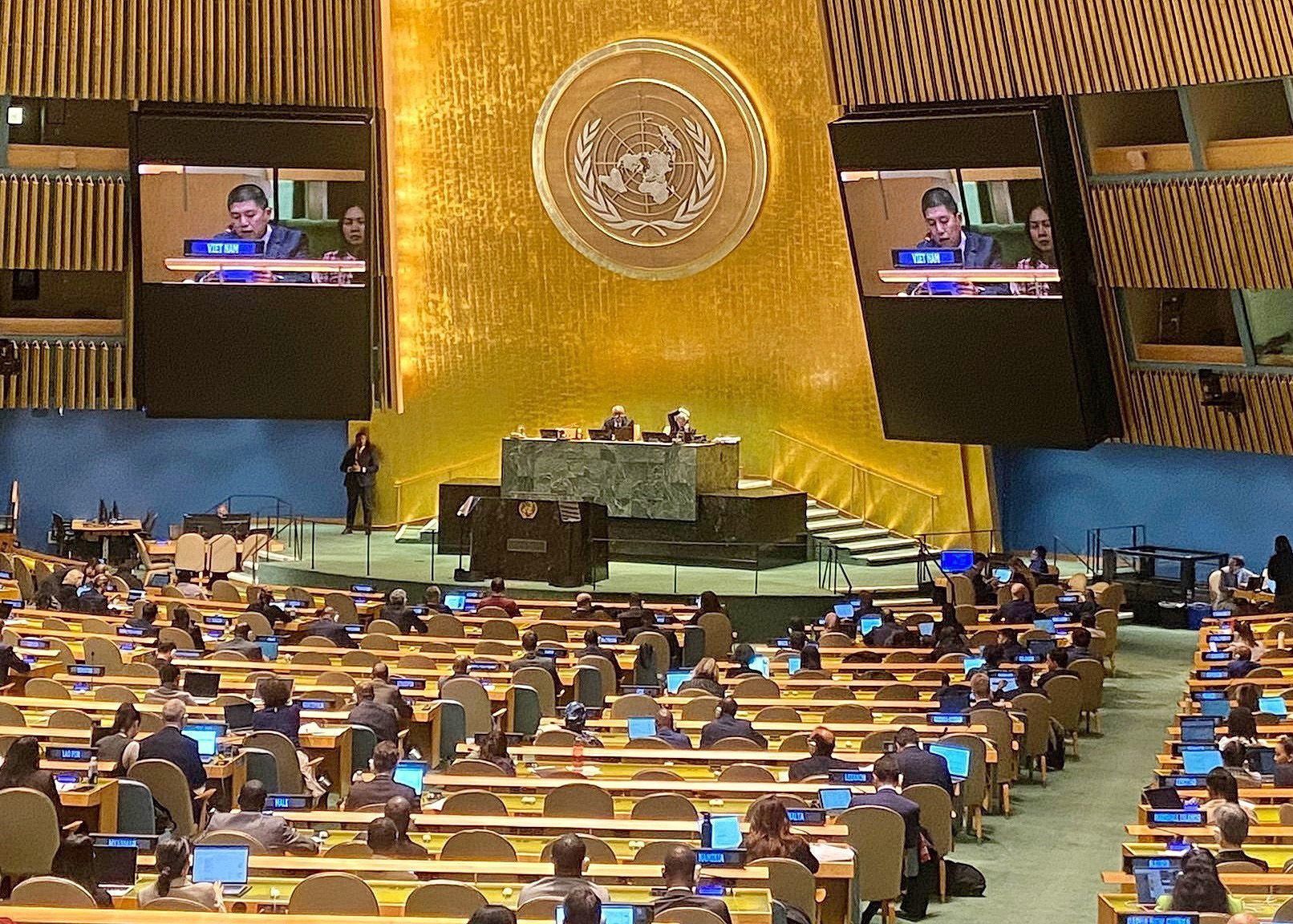 Toàn cảnh phiên họp thông qua Công ước Liên hợp quốc về chống tội phạm mạng, ngày 24/12/2024. (Ảnh: TTXVN)