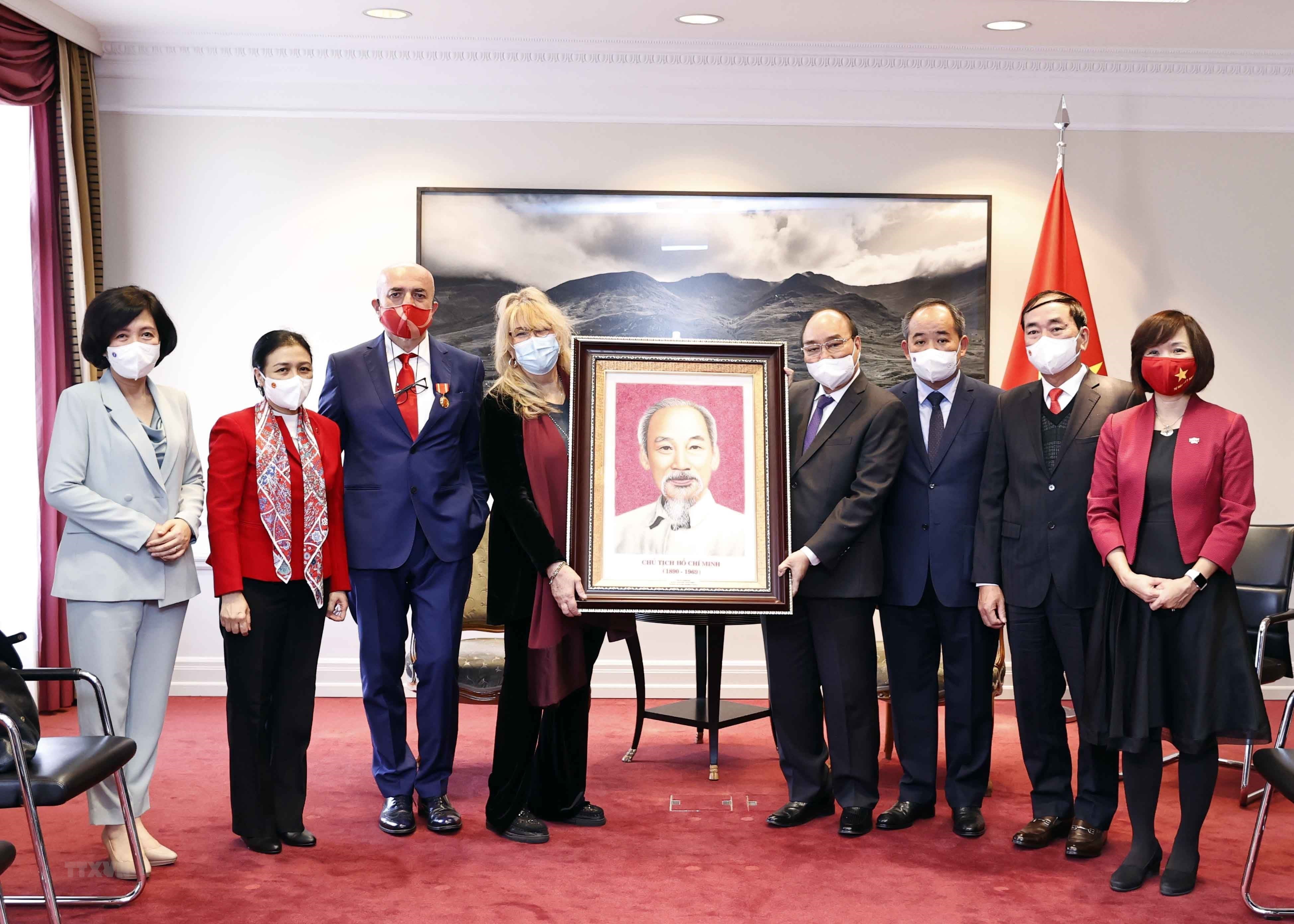 President Nguyen Xuan Phuc presents the Friendship Medal to the Switzerland-Vietnam Friendship Association.