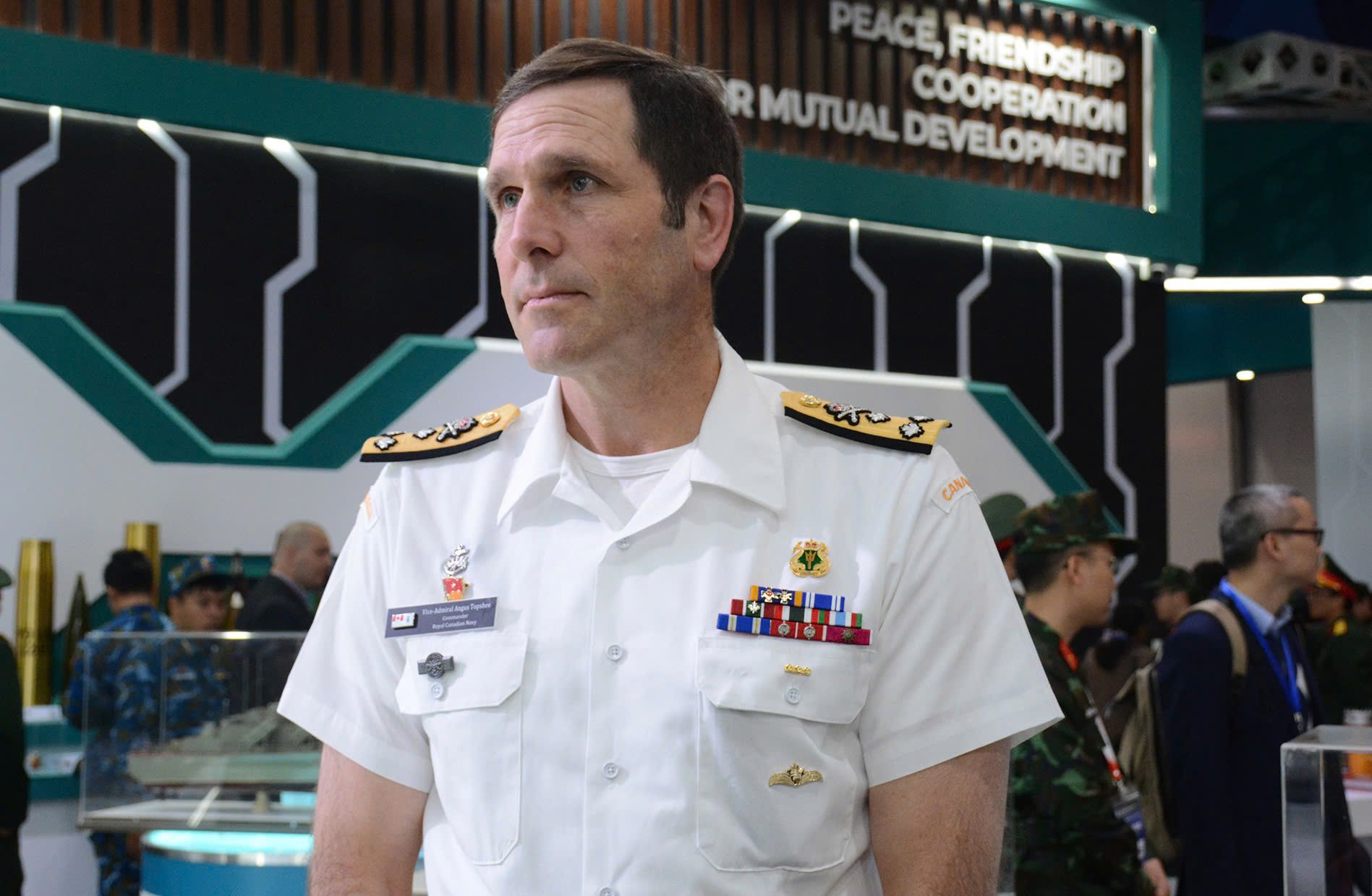 Évaluant le thème de l'Exposition « Paix, amitié, coopération pour le développement mutuel », le commandant de la Marine royale canadienne, le vice-amiral Angus Topshee, a souligné qu'il s'agit d'un message très significatif, démontrant les objectifs et les préoccupations communs de la communauté internationale, notamment le Vietnam et le Canada.