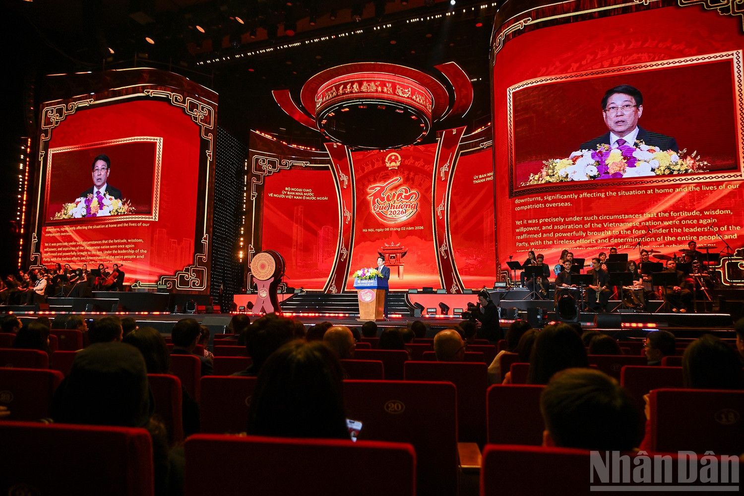 Dans l'atmosphère animée et vibrante qui règne à l'approche du nouveau printemps et des retrouvailles à l'aube de l'Année du Cheval... Aujourd'hui, à Hanoï, capitale millénaire de la culture et de l'héroïsme, ville de la paix, cœur bien-aimé de la nation vietnamienne, où « réside l'âme des montagnes et des rivières millénaires », je suis, avec les dirigeants du Parti, de l'État, du Front de la Patrie du Vietnam et les responsables des administrations, ministères et organisations du gouvernement central et de la ville de Hanoï, très heureux et ému de rencontrer nos compatriotes venus du monde entier pour participer au Programme du Printemps du pays natal 2026.