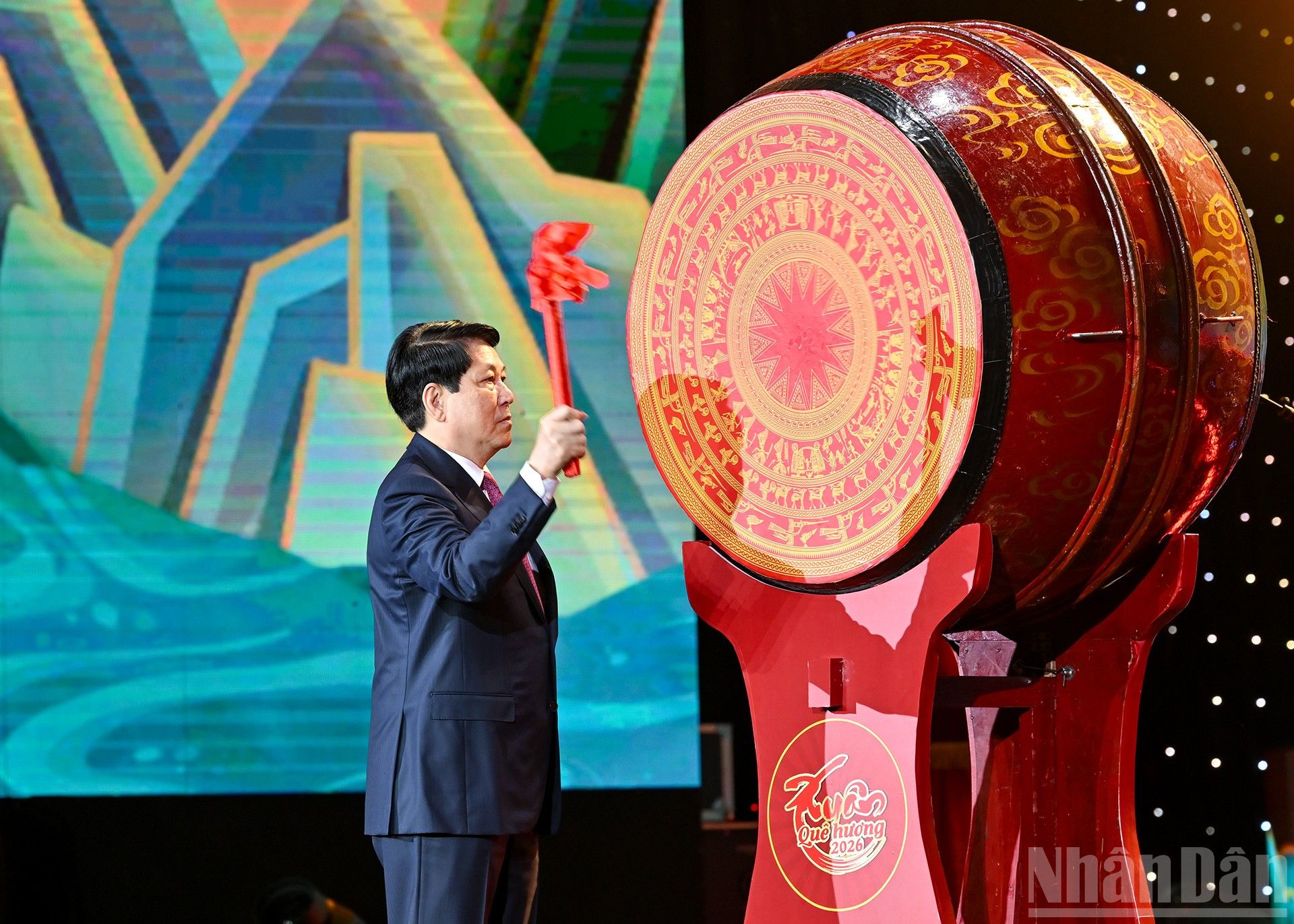 Le Président vietnamien, Luong Cuong, bat le tambour pour l’ouverture du Printemps Binh Ngo 2026.