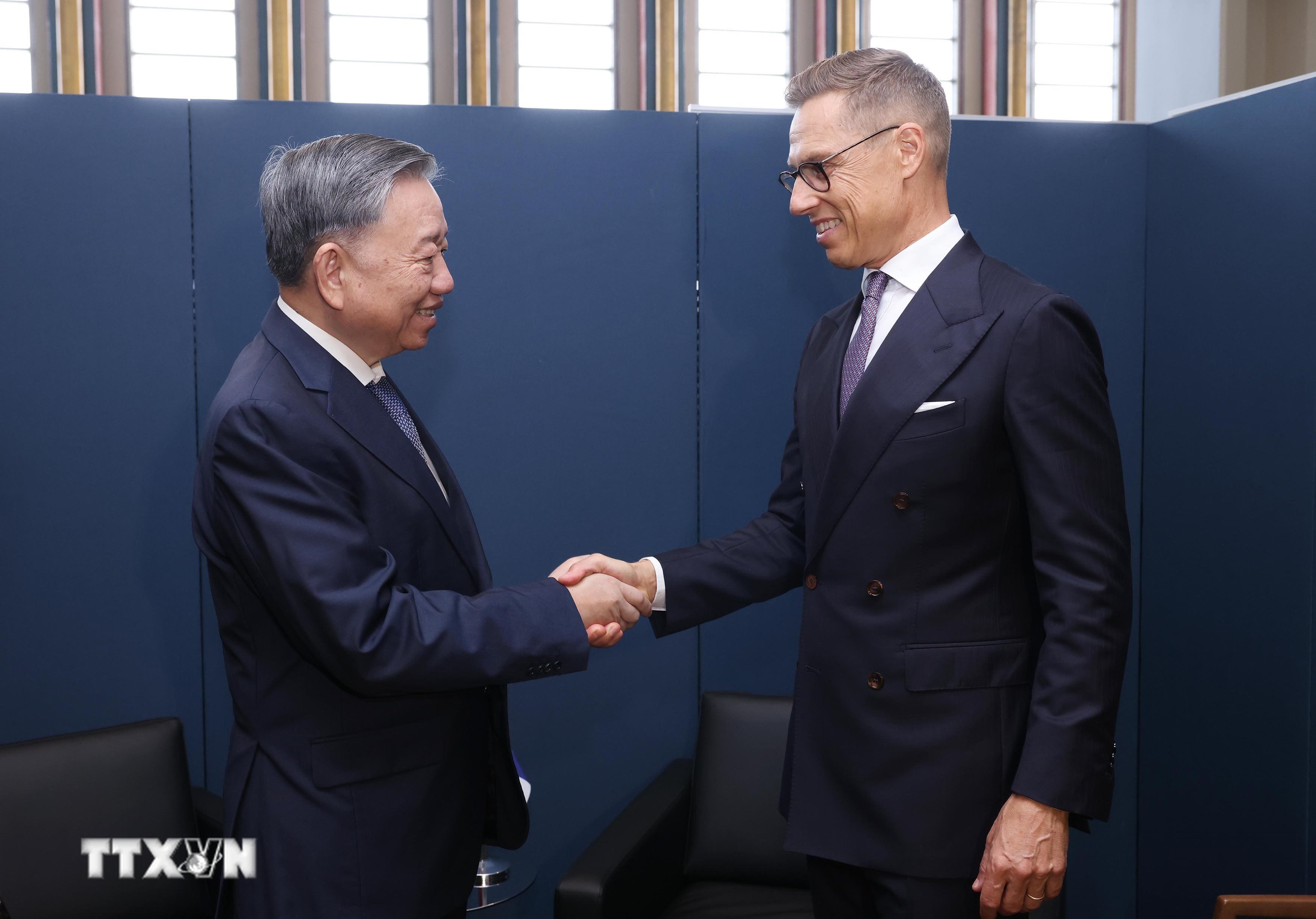 越共中央总书记、国家主席苏林会见芬兰总统亚历山大·斯图布。(图片来源:越通社)