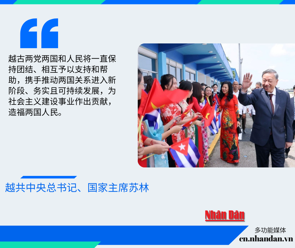 越共中央总书记、国家主席苏林对古巴进行的国事访问是重要里程碑,将越古关系带入新阶段,使之务实、可持续发展,造福两国人民,致力于社会主义,致力于各地区及世界的和平、合作和发展。访问后双方发表的越古联合声明凸显了这一点。
