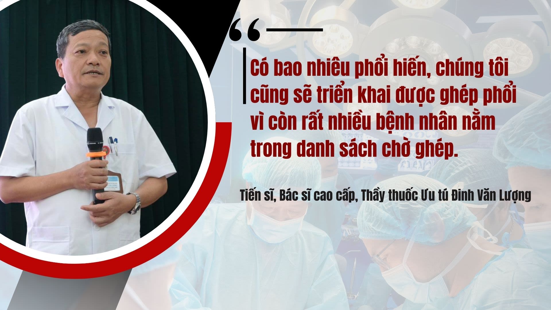 “Toàn bộ quá trình trước/trong/sau ghép phổi thực sự như một trận chiến tổng lực mà ở đó có rất nhiều chuyên khoa, chuyên gia các chuyên ngành đều tham gia trận chiến này. Mỗi ca ghép phổi là một trận đánh tổng lực như thế, huy động nhân sự và nguồn lực tới hàng trăm bác sĩ ở các bệnh viện lớn hàng đầu Việt Nam. Và chỉ cần sai sót nhỏ trong một mắt xích, một khâu nào đó của trận chiến thì quá trình ghép phổi sẽ dễ rơi vào thất bại”, Tiến sĩ, bác sĩ cao cấp Đinh Văn Lượng tâm sự.