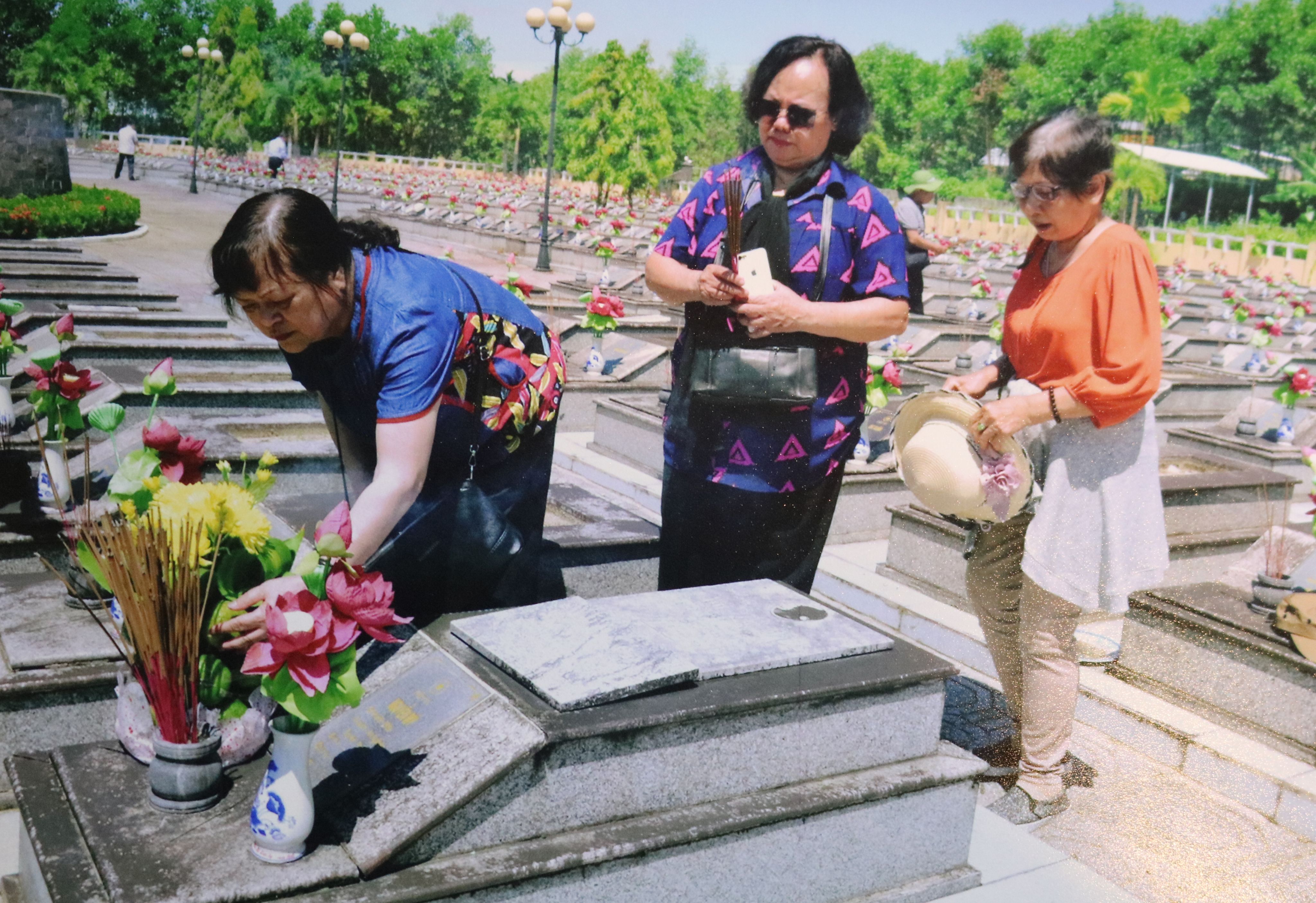 Đại tá, nhà văn Vũ Thị Hồng về thăm những đồng đội cũ đã hy sinh.