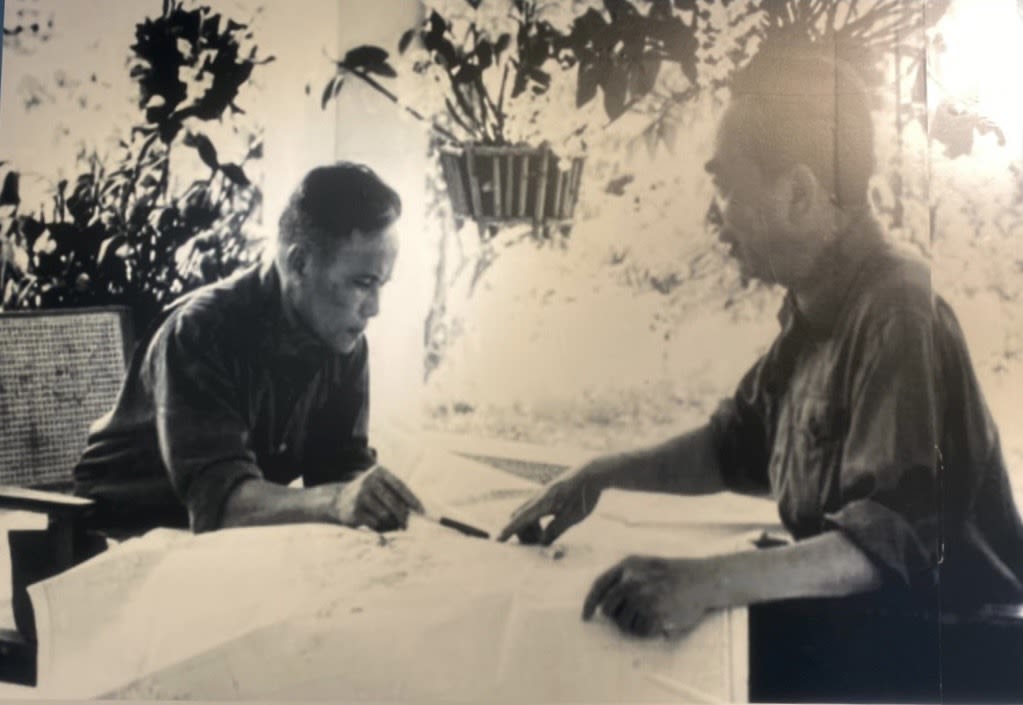 Thiếu tướng Chu Huy Mân nhận nhiệm vụ từ Đại tướng Võ Nguyên Giáp tại 30 Hoàng Diệu trước khi vào mặt trận Khu 5 và Tây Nguyên, 1966.