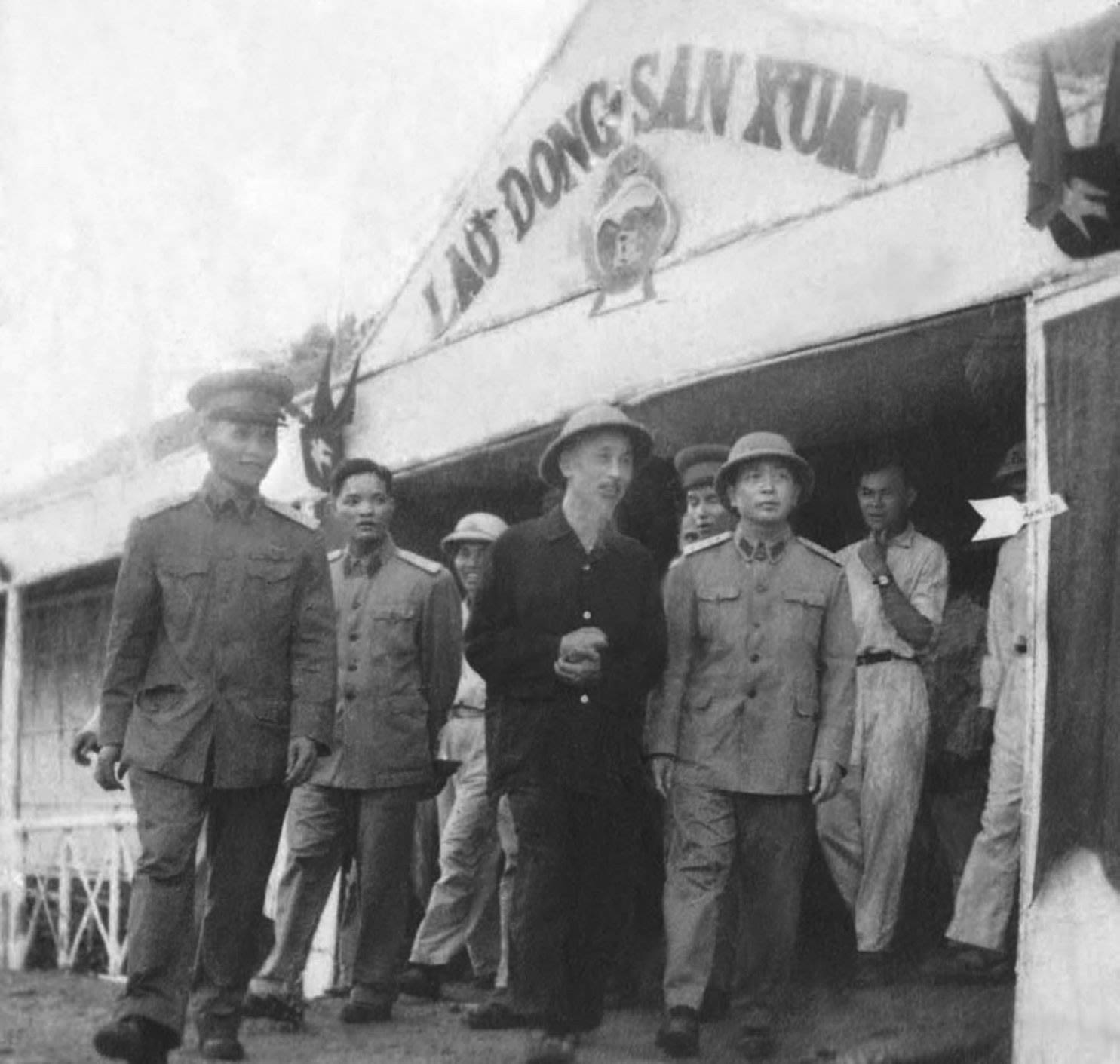 Đồng chí Chu Huy Mân, Chính ủy Quân khu Tây Bắc đón Chủ tịch Hồ Chí Minh đến thăm và làm việc tại Thuận Châu, Sơn La, tháng 5/1959.