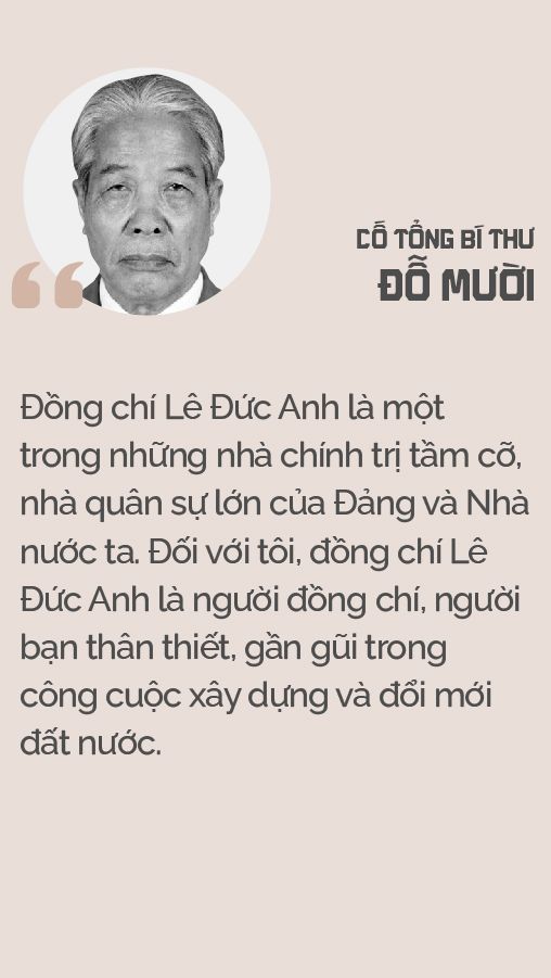 Ông là vị tướng trận mạc, sống nhân hậu, Đồng chí Lê Đức Anh là một trong những nhà chính trị tầm cỡ, nhà quân sự lớn của Đảng và Nhà nước ta. Đối với tôi, đồng chí Lê Đức Anh là người đồng chí, người bạn thân thiết, gần gũi trong công cuộc xây dựng và đổi mới đất nước.