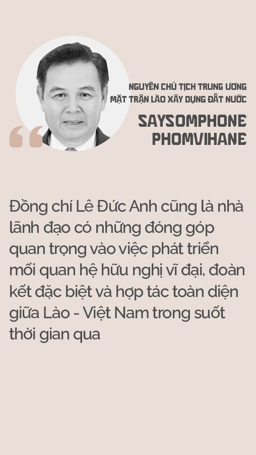 Đồng chí Lê Đức Anh cũng là nhà lãnh đạo có những đóng góp quan trọng vào việc phát triển mối quan hệ hữu nghị vĩ đại, đoàn kết đặc biệt và hợp tác toàn diện giữa Lào - Việt Nam trong suốt thời gian qua.