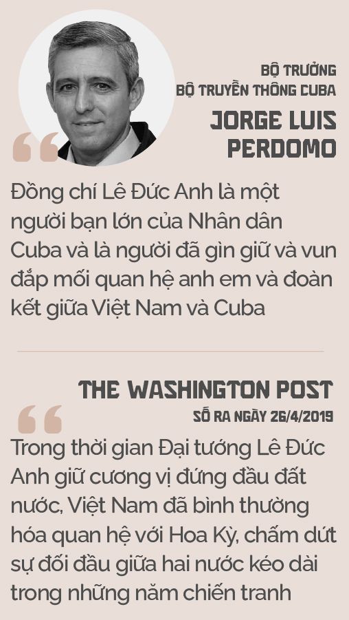 Đồng chí Lê Đức Anh là một người bạn lớn của Nhân dân Cuba và là người đã gìn giữ và vun đắp mối quan hệ anh em và đoàn kết giữa Việt Nam và Cuba.