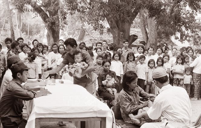 Trước cảnh tượng người dân Campuchia kiệt sức, không có cơm ăn, thuốc uống, đồng chí Lê Đức Anh đã đề xuất “việc đầu tiên bây giờ là quân đội và chuyên gia chúng ta phải tập trung cứu đói, cứu đau cho dân”. Ý kiến đó được tập thể lãnh đạo nhất trí, cụm từ “cứu đói, cứu đau” được phổ biến đến tận các đơn vị. Trong khi lương thực, thuốc men chưa vận chuyển đến kịp, cán bộ, chiến sĩ quân tình nguyện đã san sẻ định lượng của mình cho nhân dân nước bạn. Cùng với mệnh lệnh “cứu đói”, thực hiện mệnh lệnh “Cứu đau” của đồng chí Lê Đức Anh, quân tình nguyện và chuyên gia quân sự Việt Nam đã lập các trạm quân y dã chiến, kịp thời cứu chữa cho nhân dân nước bạn. Được sẻ chia lon gạo, viên thuốc trong lúc cái chết đã kề bên, người dân Campuchia ghi lòng tạc dạ sự giúp đỡ chí nghĩa, chí tình của quân tình nguyện và chuyên gia quân sự Việt Nam. Càng hiểu sâu sắc những phẩm chất tốt đẹp của người lính cách mạng, của Bộ đội Cụ Hồ, càng tin tưởng ủng hộ bộ đội Việt Nam.