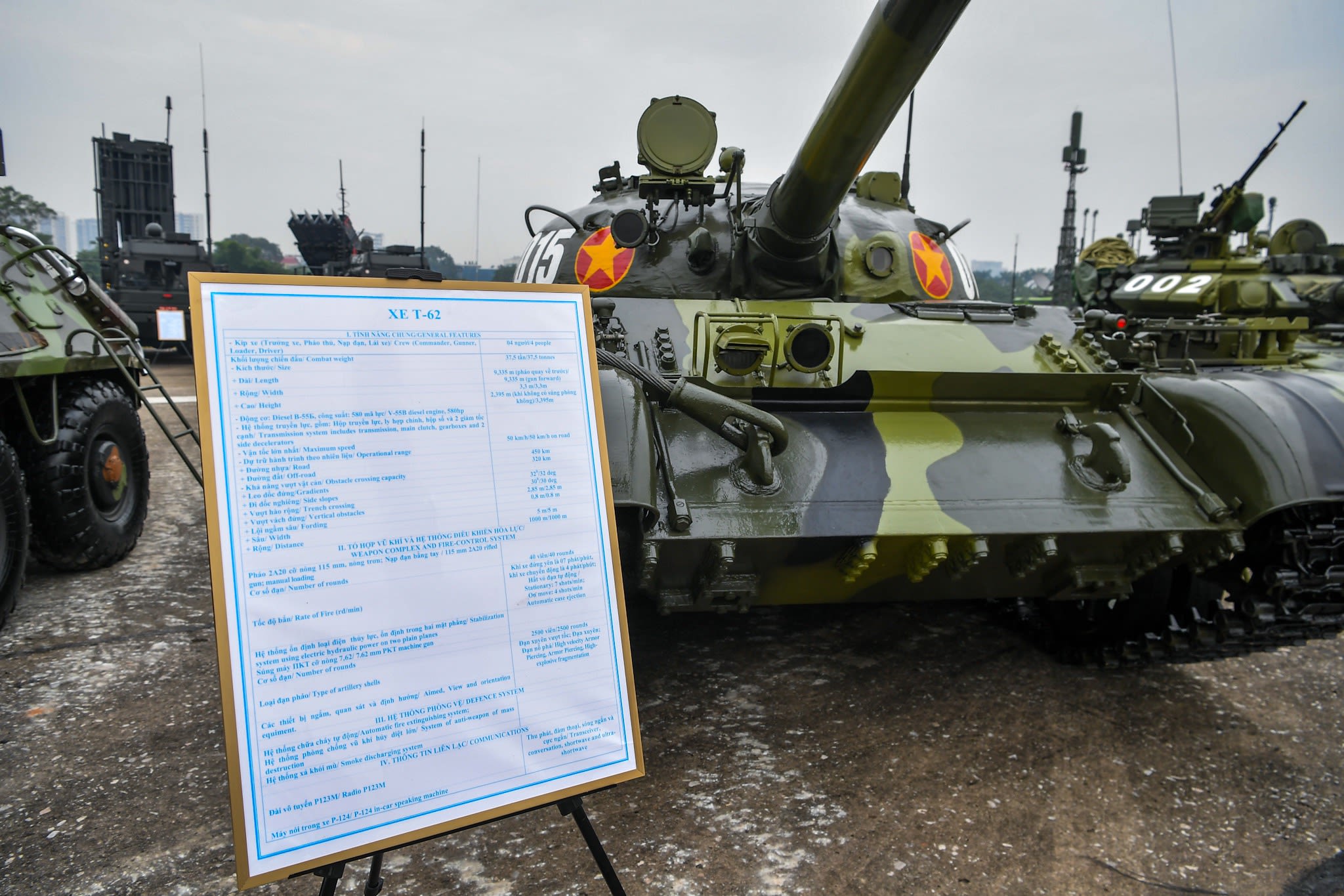 Xe tăng T-62 được Liên Xô phát triển từ đầu thập niên 1960, là một phiên bản cải tiến so với mẫu tăng T-54 rất thành công. T-62 có kíp lái 4 người; trọng lượng 37,5 tấn; dài 9,335 m; rộng 3,3m và cao 3,395 m. Xe được trang bị động cơ 580 mã lực với tốc độ tối đa 50 km/h.