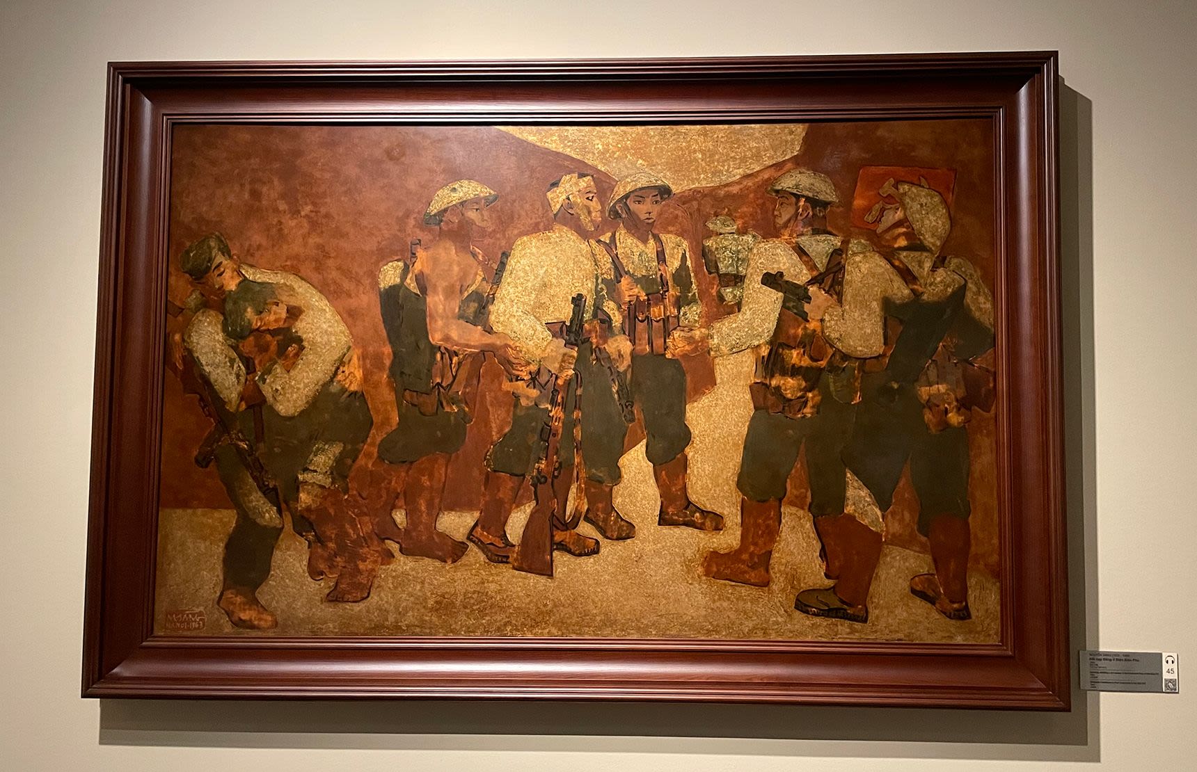 Директор Музея изобразительных искусств в Ханое кандидат наук Нгуен Ань Минь рассказал, что лаковая картина художника Нгуен Шанга «Церемония принятия в Партию в Дьенбьенфу» по сей день остается вершиной искусства социалистического реализма.