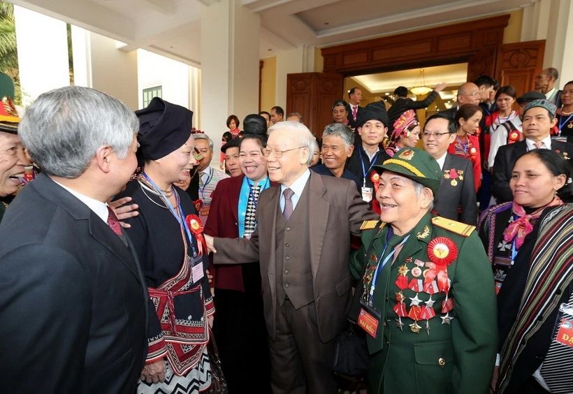 Tổng Bí thư Nguyễn Phú Trọng gặp mặt đại biểu người có uy tín, nhân sĩ, trí thức, doanh nhân dân tộc thiểu số tiêu biểu toàn quốc năm 2017.