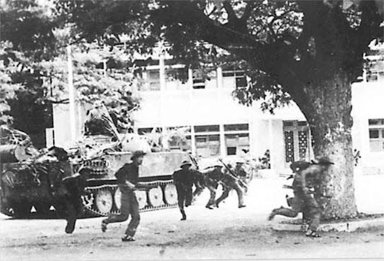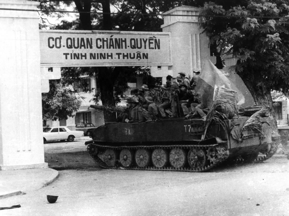 Quân Giải phóng miền Nam Việt Nam đánh chiếm dinh Tỉnh trưởng Phan Rang, mở đường tiến quân về giải phóng Sài Gòn. Ảnh: TTXVN