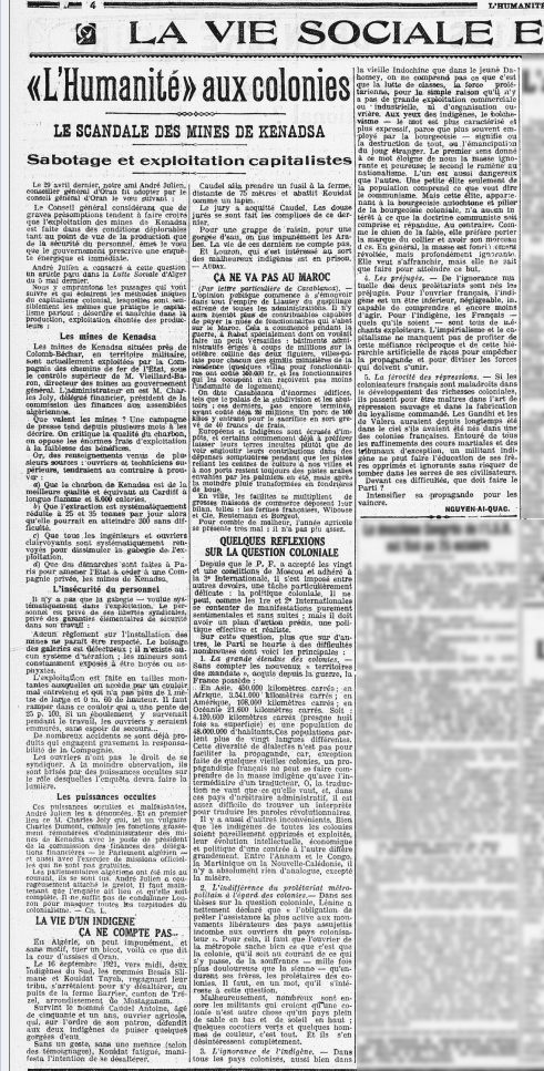 Tại trung tâm lưu trữ của báo Nhân đạo (ra đời năm 1904, đại diện cho tư tưởng xã hội chủ nghĩa và đến năm 1920 trở thành cơ quan ngôn luận trung ương của Đảng Cộng sản Pháp) có lưu bài báo "Ở Đông Dương, vấn đề dân bản địa" chiếm một vị trí quan trọng trong số báo ngày 2/8/1919. Trong đó, Nguyễn Ái Quốc đã phác họa về những gì mà sau này sẽ là nội dung cốt lõi của "Bản án chế độ thực dân Pháp" năm 1925.
