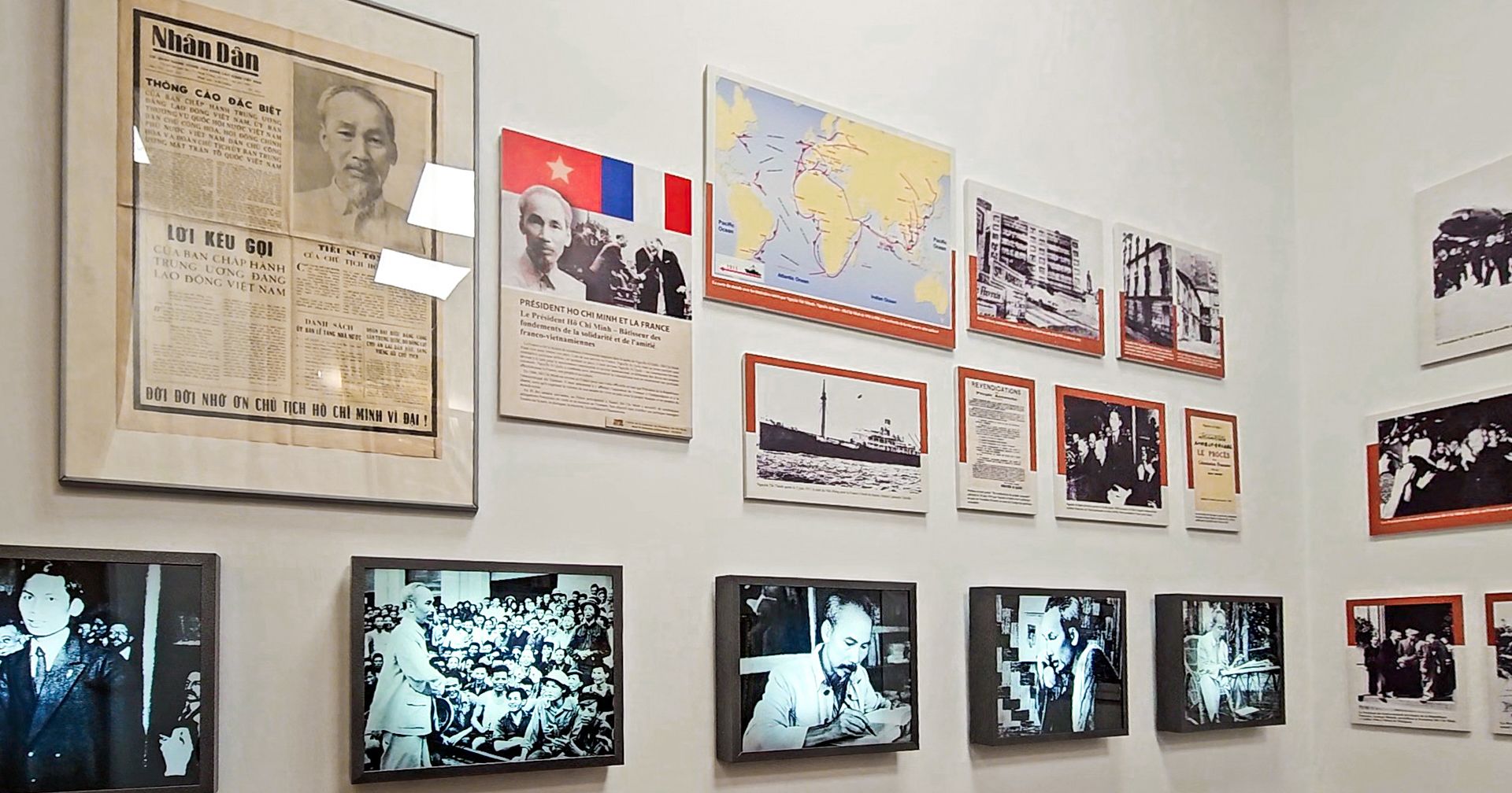 Hình ảnh và tư liệu về Chủ tịch Hồ Chí Minh được trưng bày tại Không gian Hồ Chí Minh trong Bảo tàng Lịch sử Sống ở thành phố Montreuil.