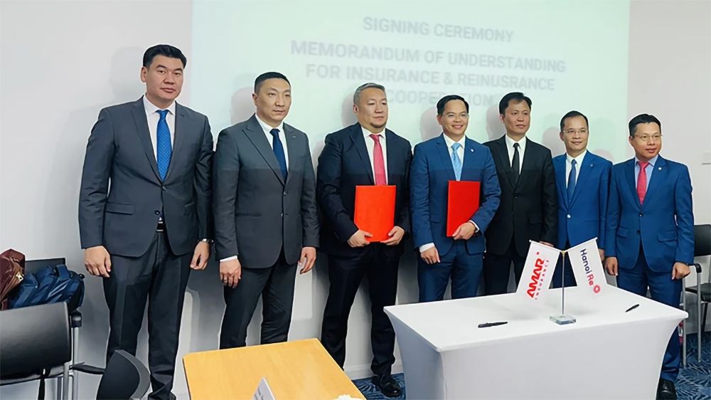 2024年4月24日,越南河内RE公司与蒙古阿马尔保险公司保险和再保险领域合作谅解备忘录签字仪式。(图片来源:越南驻蒙古国大使馆)