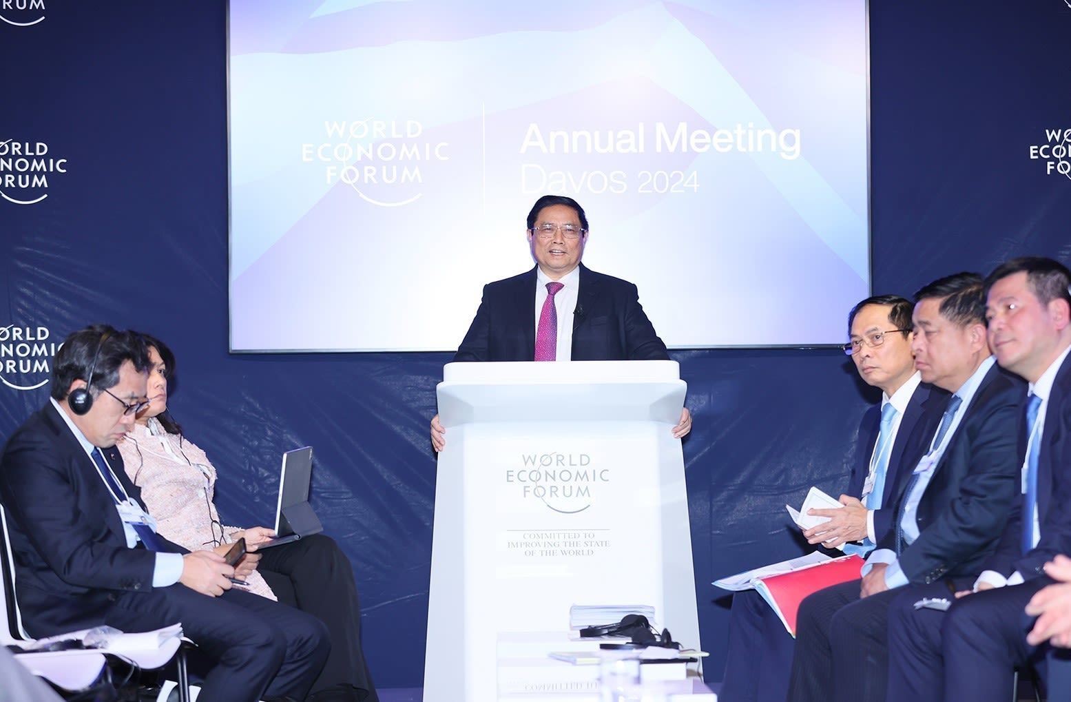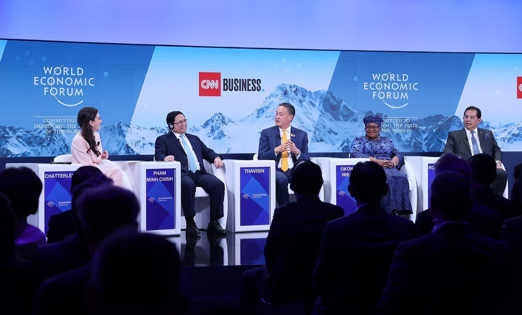 Премьер-министр Фам Минь Тьинь выступил в качестве основного докладчика на политическом диалоге «Вьетнам: Ориентация на глобальное видение», состоявшем 16 января 2024 г. в Давосе. Фото: ВИА