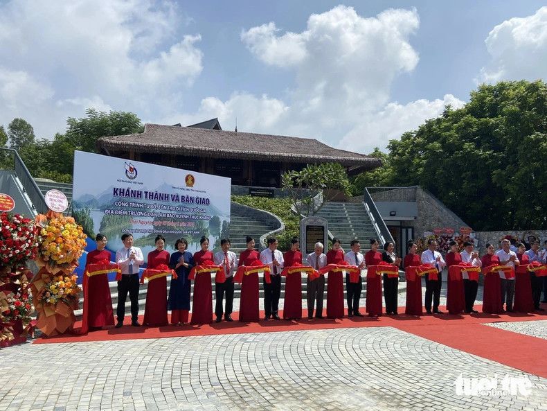 Le 9 août 2024, à Thai Nguyen, l’Association des Journalistes vietnamiens, en collaboration avec le Comité populaire de la province de Thai Nguyen, a organisé l’inauguration des travaux de restauration et de mise en valeur du site historique de l’École de journalisme Huynh Thuc Khang, située dans la commune de Tan Thai, district de Dai Tu, province de Thai Nguyen, après sept mois de travaux. Photo : Musée de la presse du Vietnam.