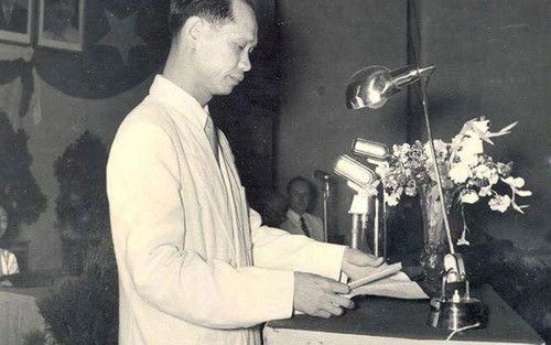 « Dans la première classe de notre pays, ouverte en temps de résistance, un poloton de soldats du front journalistique est parti avec la mission de combattre l'ennemi et de construire le pays sur le champ de bataille de la plume et de l'encre » - extrait d'un article du regretté journaliste Xuan Thuy, premier président de l'Association des journalistes vietnamiens, paru dans le numéro spécial du journal Cuu Quoc (Salut National) en septembre 1949, qui faisait le bilan de la classe de formation en journalisme Huynh Thuc Khang, imprimé dans la zone de guerre de Viet Bac.