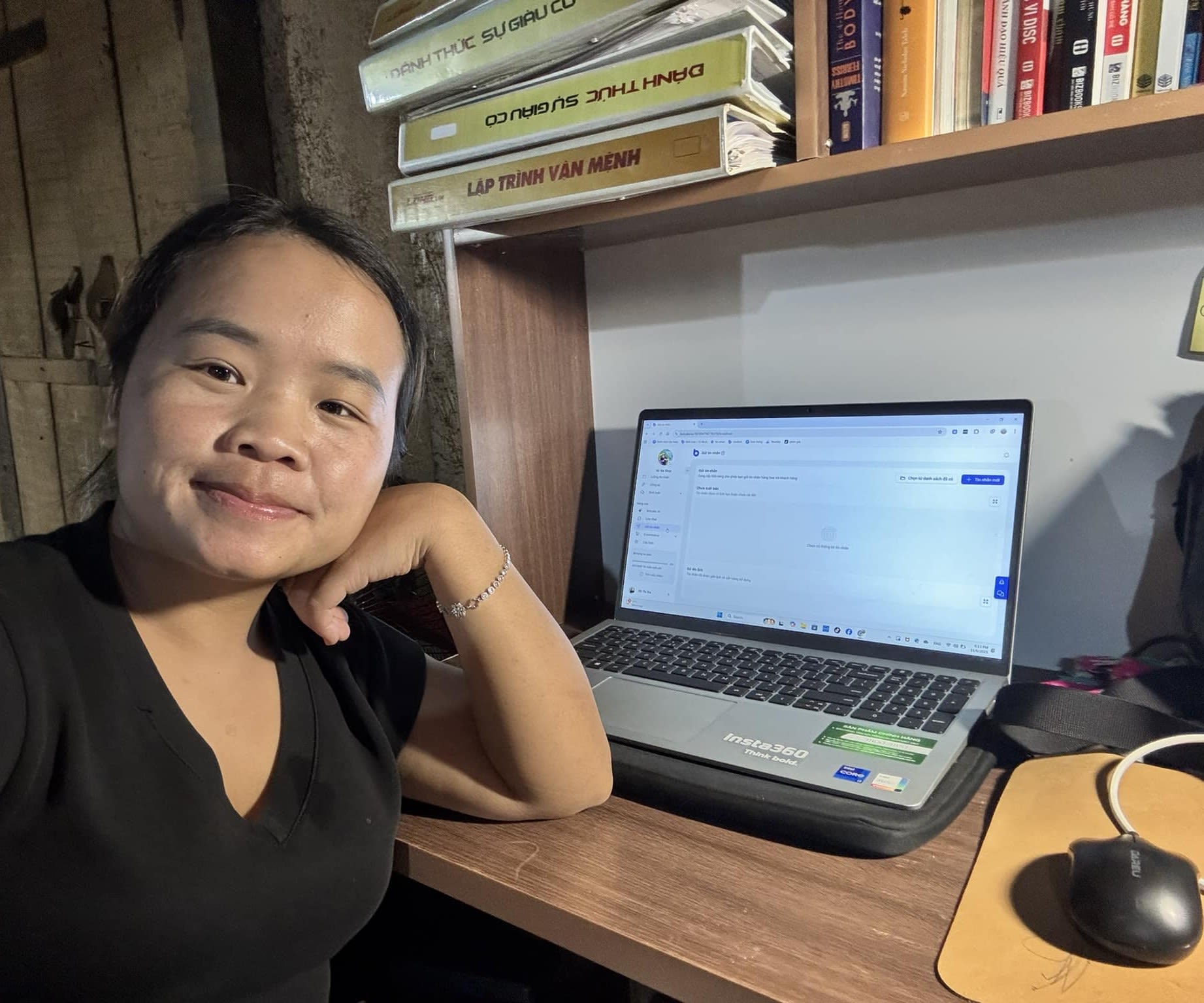 Vừ Thị Xia bắt đầu mày mò tự học cách sử dụng máy tính để có thể quản lý đơn hàng tốt hơn.