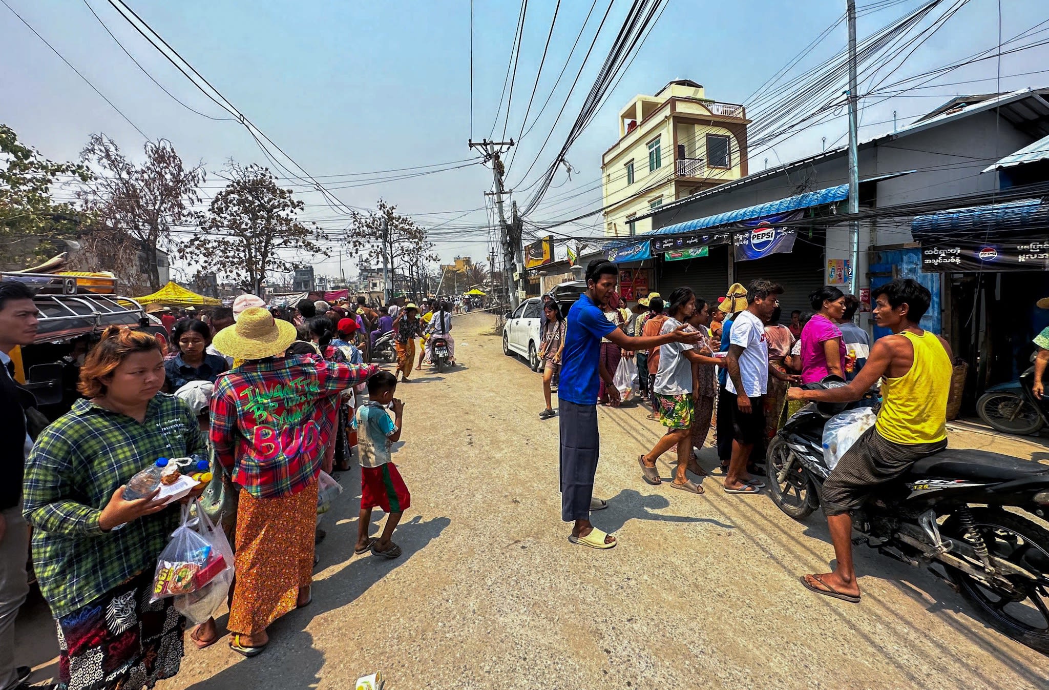 Do hệ thống cơ sở vật chất tại Mandalay bị phá hủy nghiêm trọng, hàng nghìn hộ dân buộc phải dựa vào những chuyến xe hỗ trợ nước, thực phẩm cho những nhu cầu tối thiểu hằng ngày.
