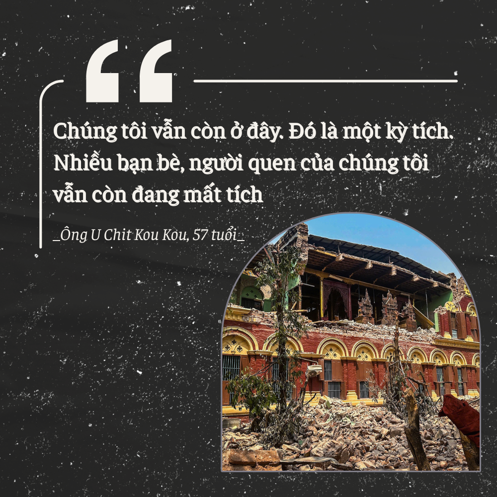 “Chúng tôi vẫn còn ở đây. Đó là một kỳ tích. Nhiều bạn bè, người quen của chúng tôi vẫn còn đang mất tích”, U Chit Kou Kou nhấn mạnh.