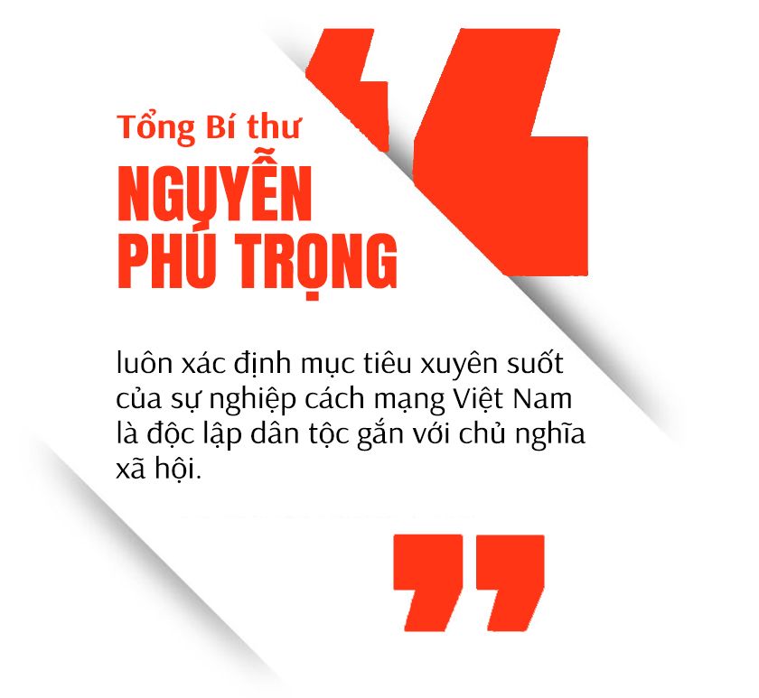 Trải qua gần 60 năm công tác, trong đó có hơn 13 năm trên cương vị người đứng đầu Đảng Cộng sản Việt Nam, Tổng Bí thư Nguyễn Phú Trọng luôn xác định mục tiêu xuyên suốt của sự nghiệp cách mạng Việt Nam là độc lập dân tộc gắn với chủ nghĩa xã hội; từ đó góp phần hiện thực hóa khát vọng đưa Việt Nam trở thành một quốc gia hùng cường.