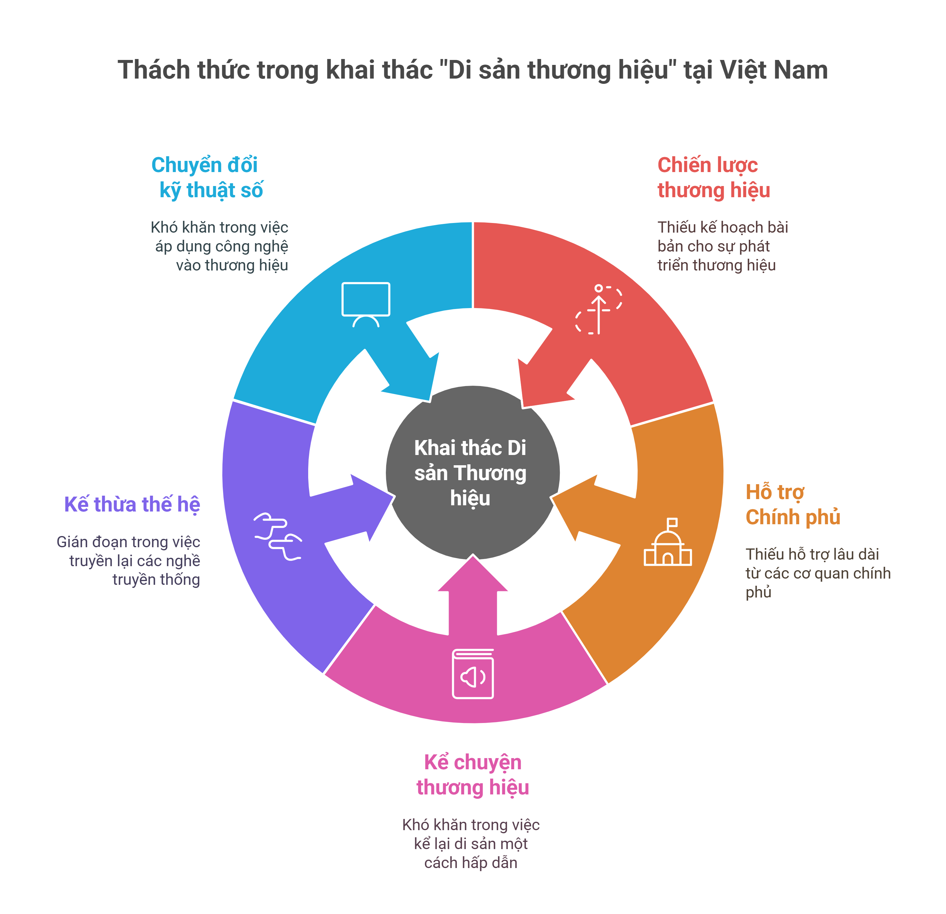 Thực tế cho thấy rằng việc khai thác di sản thương hiệu tại Việt Nam vẫn còn mang nặng tính manh mún, nhỏ lẻ và thiếu tính liên kết vùng miền hoặc ngành hàng. Các sản phẩm thường được phát triển theo hướng “mạnh ai nấy làm”, thiếu một câu chuyện thương hiệu được định hình rõ ràng, thiếu sự đầu tư vào bản sắc hình ảnh và ngôn ngữ thương hiệu, và đặc biệt là thiếu sự tiếp cận từ góc nhìn người tiêu dùng hiện đại. Trong nghiên cứu của Wiedmann et al. (2011), tính chân thực và sự tiếp nối văn hóa là hai yếu tố cốt lõi để di sản thương hiệu chuyển hóa thành giá trị cảm xúc – yếu tố này chưa được các thương hiệu địa phương Việt Nam khai thác hiệu quả.