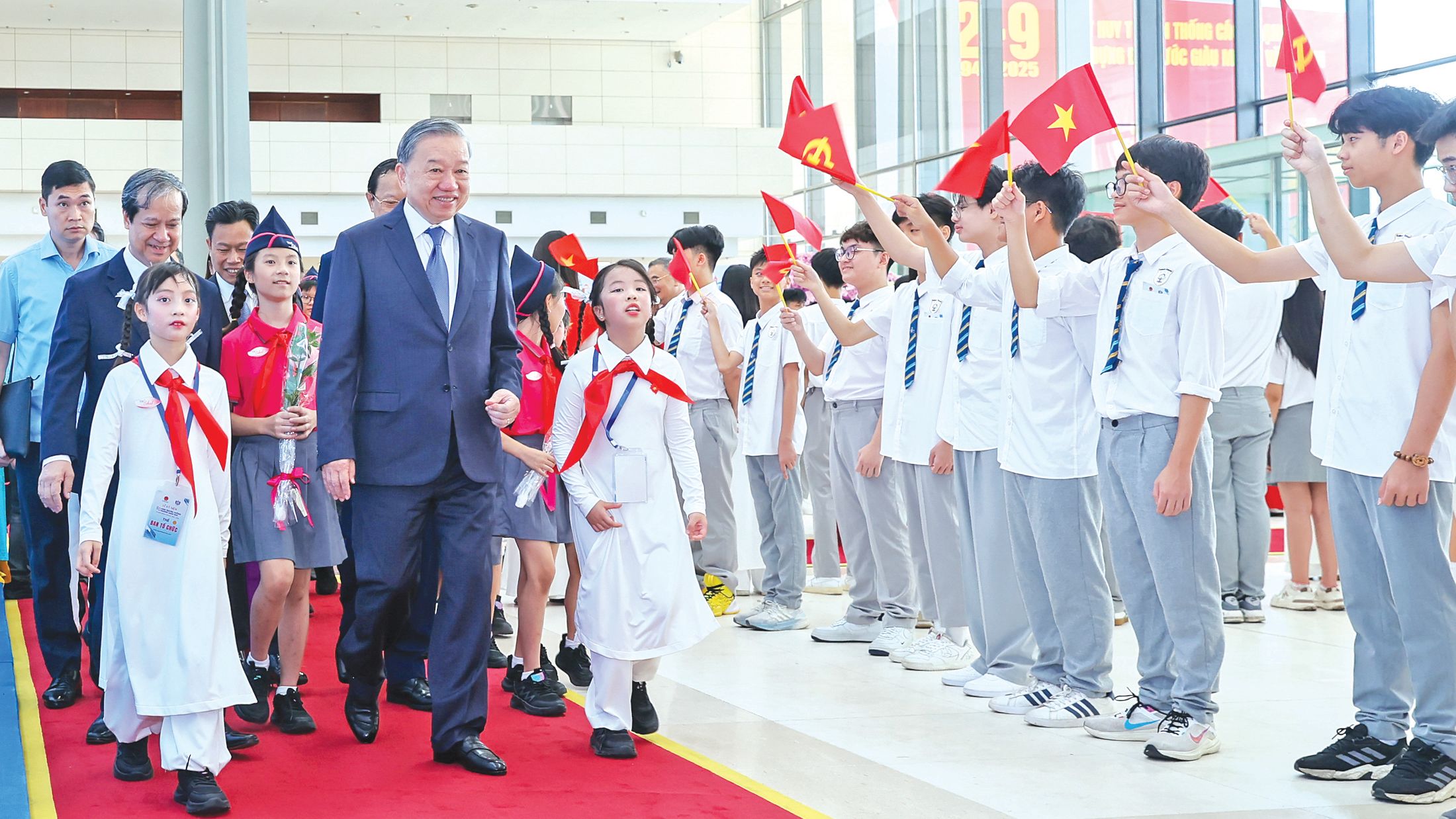 Tổng Bí thư Tô Lâm cùng các đại biểu tới dự Lễ kỷ niệm 80 năm truyền thống ngành Giáo dục và khai giảng năm học 2025-2026.