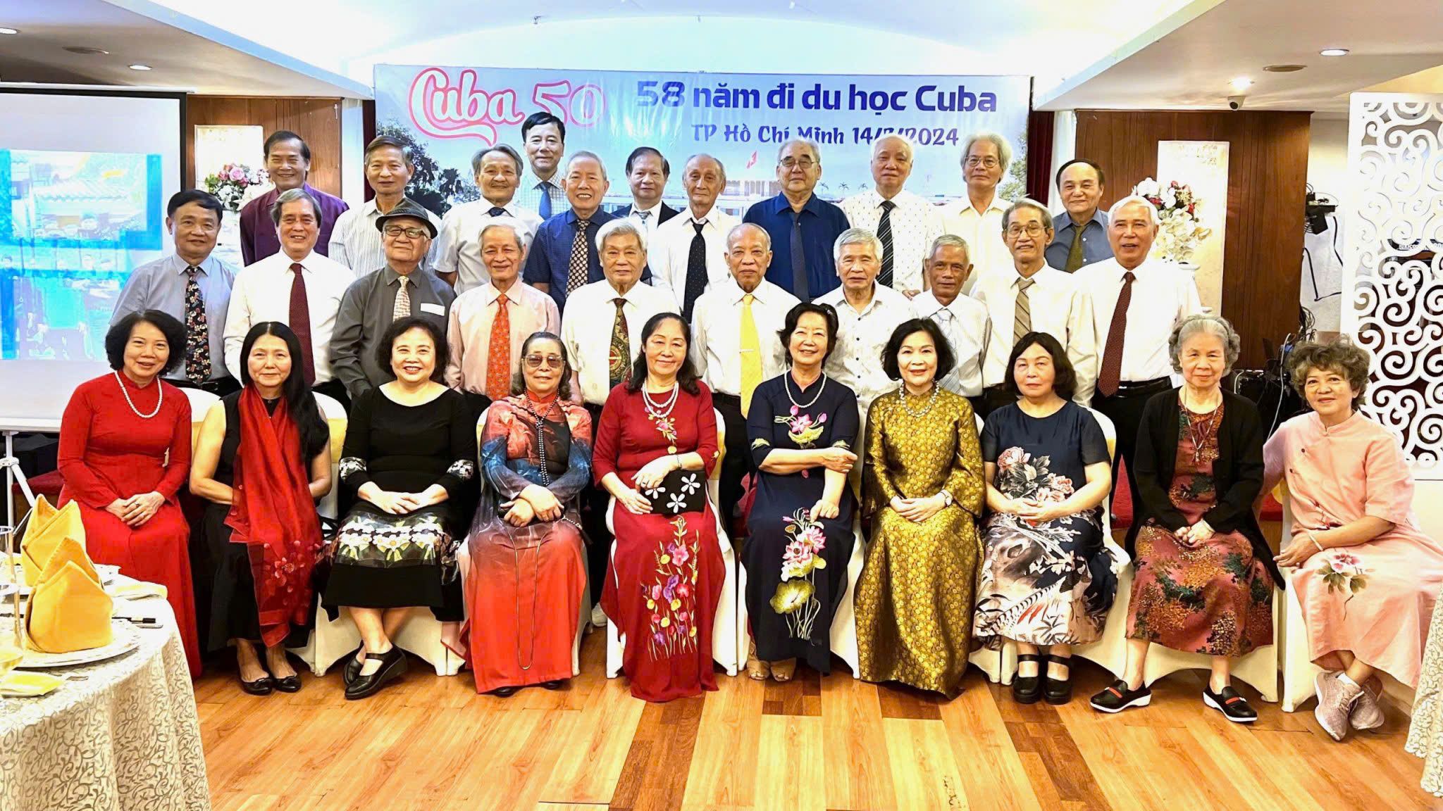 Các thành viên trong Đoàn 50 lưu học sinh sang Cuba năm 1966 gặp mặt tại Thành phố Hồ Chí Minh tháng 3/2024. (Ảnh: Nhân vật cung cấp)