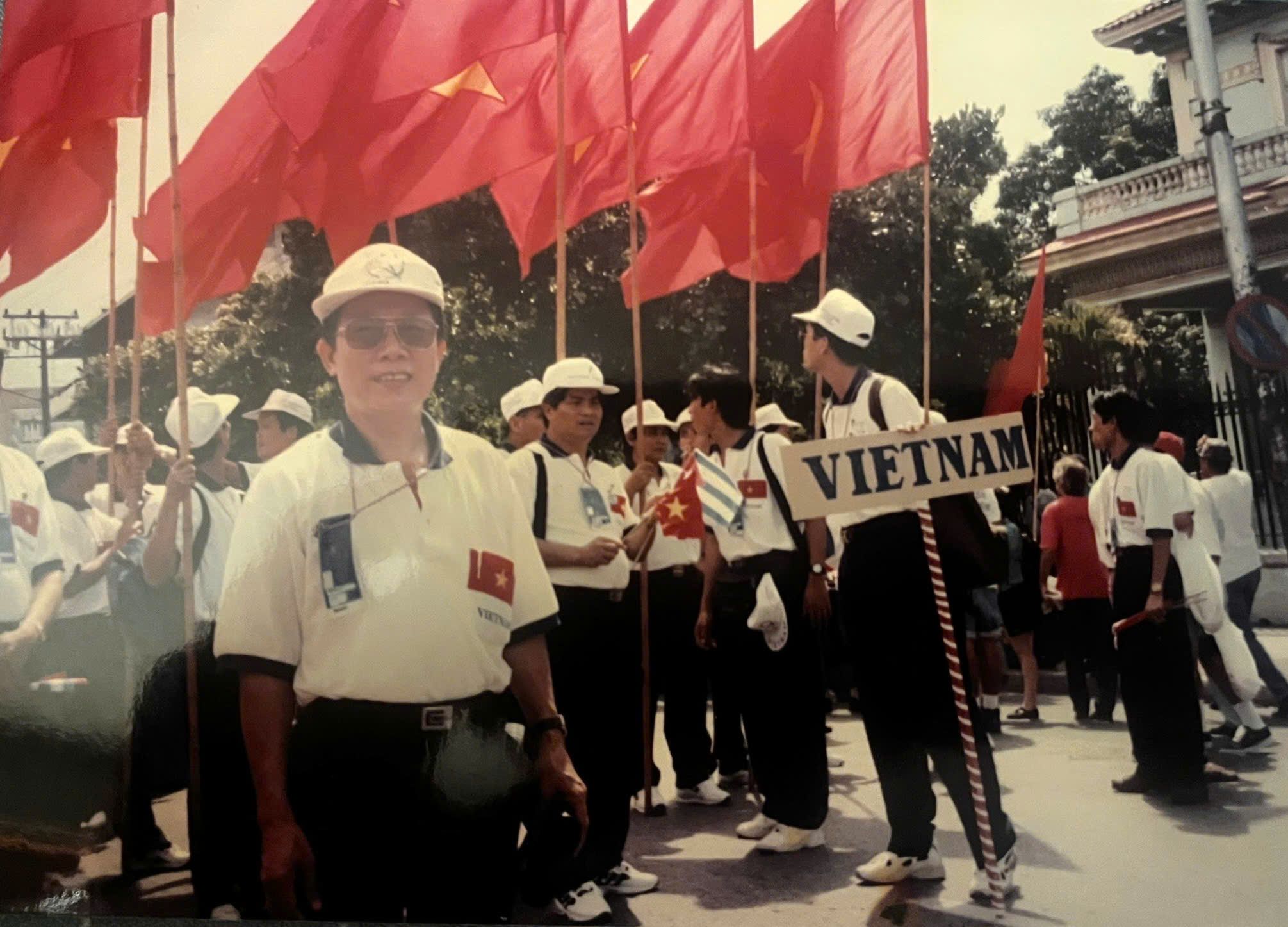 Ông Phạm Xuân Sinh tham dự Đại hội Thanh niên Sinh viên thế giới ở Cuba năm 1988. (Ảnh: Nhân vật cung cấp)