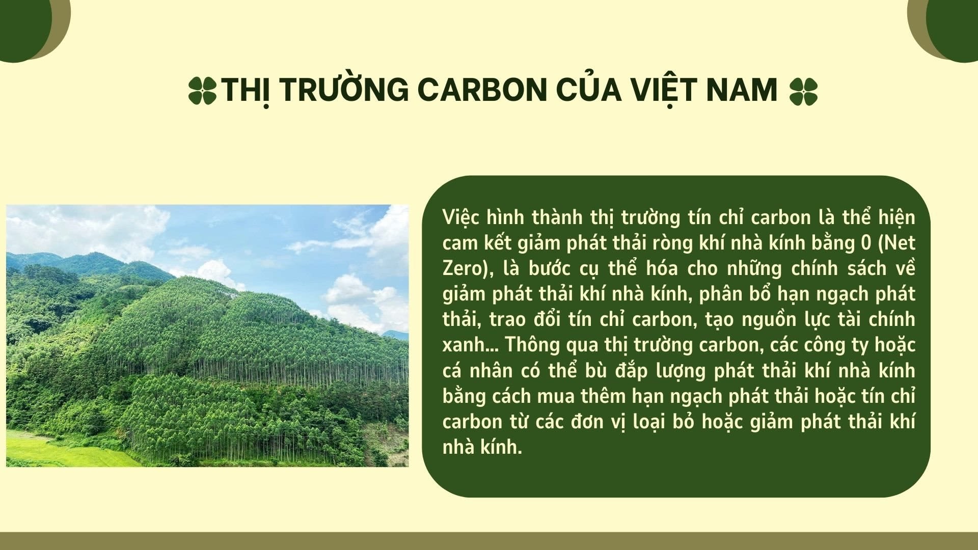 Ngày 24/01/2025 vừa qua, Thủ tướng Chính phủ đã phê duyệt Đề án thành lập và phát triển thị trường carbon Việt Nam tại Quyết định số 232/QĐ-TTg. Đề án xác định rõ các nhiệm vụ trọng tâm, từ việc hoàn thiện thể chế, xây dựng cơ sở hạ tầng kỹ thuật, hệ thống giám sát-đăng ký-giao dịch, cho đến việc nâng cao nhận thức, năng lực cho các bên liên quan. Mục tiêu cụ thể là đến năm 2025 bắt đầu triển khai vận hành thử nghiệm sàn giao dịch carbon trong nước và sau năm 2028 sẽ được vận hành chính thức.