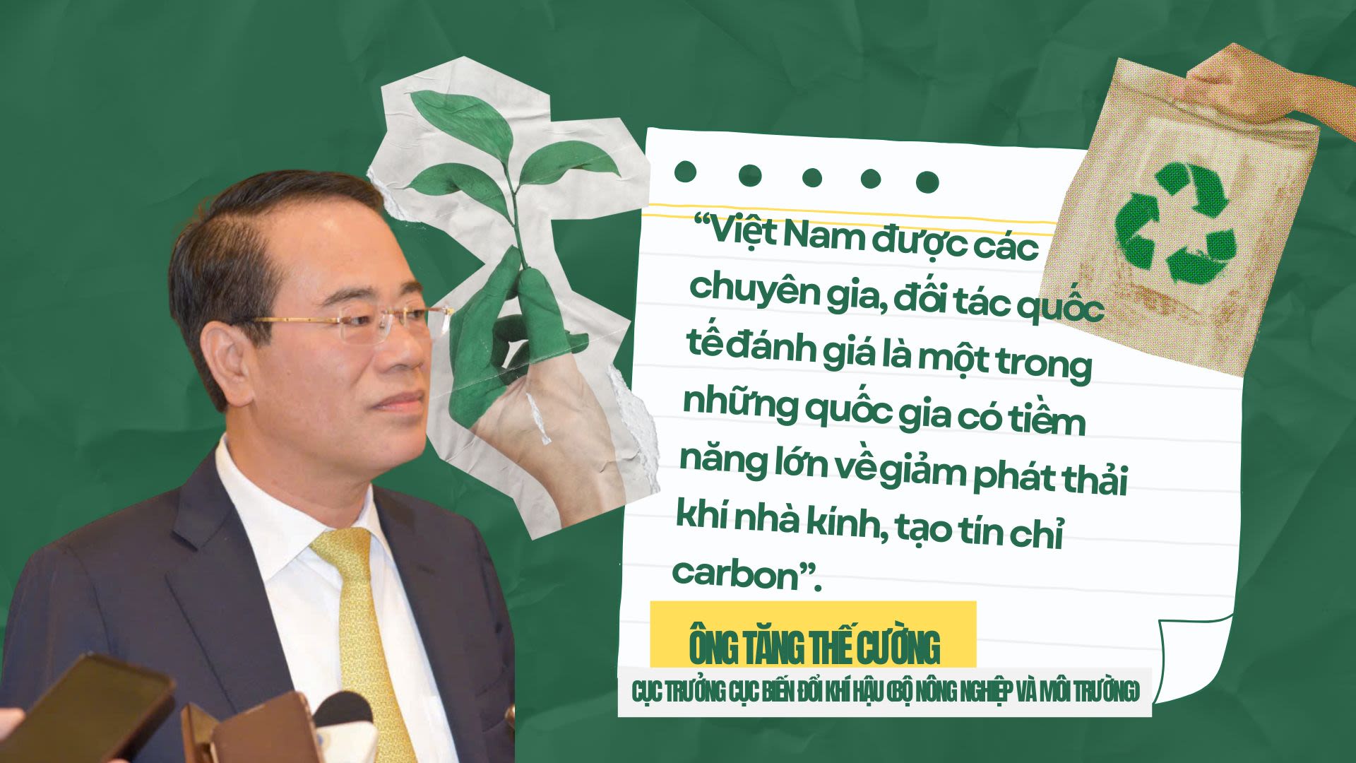 Ông Tăng Thế Cường: Việt Nam được các chuyên gia, đối tác quốc tế đánh giá là một trong những quốc gia có tiềm năng lớn về giảm phát thải khí nhà kính, tạo tín chỉ carbon. Là một quốc gia đang phát triển, có mức tăng trưởng kinh tế cao, nhiều hoạt động sản xuất, kinh doanh phát thải lượng lớn khí nhà kính, trong khi việc ứng dụng công nghệ cao trong trong thực tiễn còn chưa nhiều, do đó chúng ta còn có nhiều dư địa để giảm phát thải khí nhà kính, tạo tín chỉ carbon. Ngoài ra, Việt Nam có tỷ lệ che phủ rừng khá cao, có điều kiện để phát triển rừng, bảo vệ rừng và làm gia tăng trữ lượng carbon rừng.