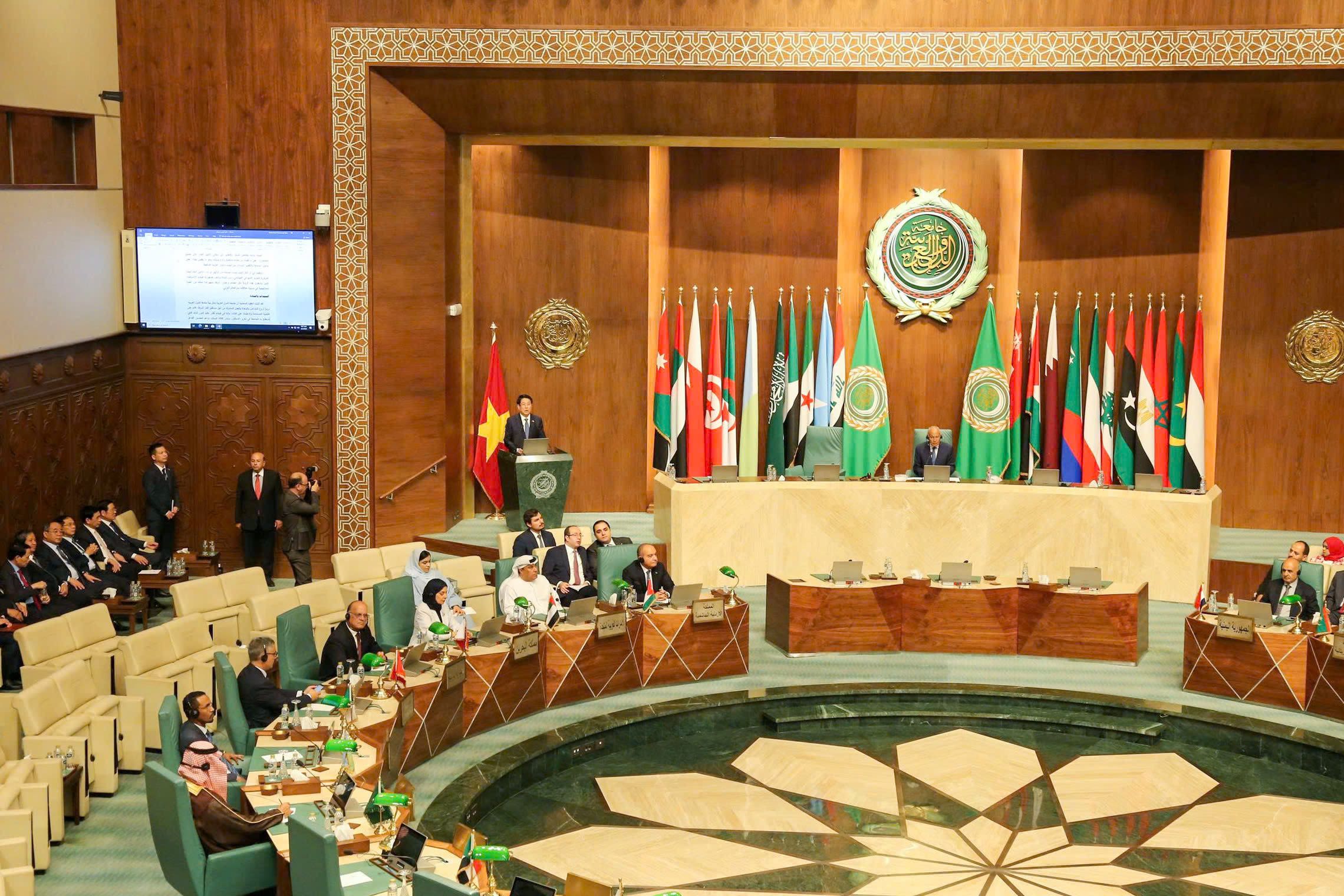 Le chef d’État vietnamien Luong Cuong prononce un discours de politique générale à la Ligue arabe. Photo : Xuan Ky.