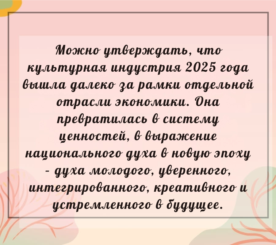 Достижения культурной индустрии в 2025 году не только ознаменовали яркий год, но и открыли новый горизонт для национального мышления о развитии.