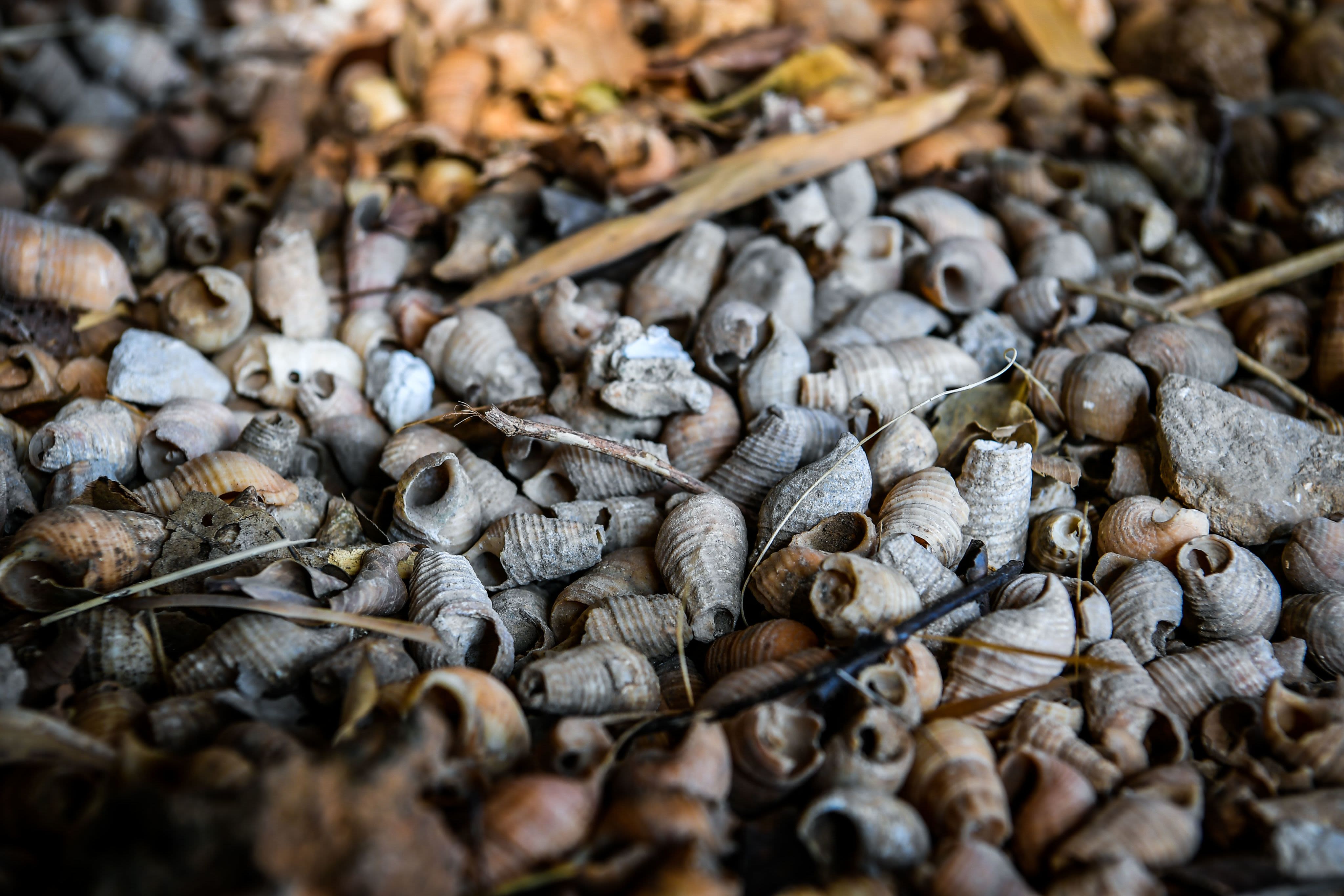 Следы речных улиток тысячи лет назад в пещере Мекунг.