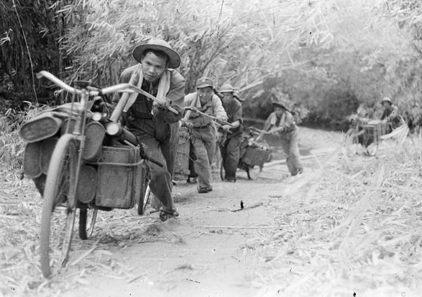 Bộ đội vận tải thuộc đơn vị 250 (Gia Lai) chuyển lương thực, vũ khí ra chiến trường trong chiến dịch Tây Nguyên. (Ảnh: Anh Tôn/TTXVN)