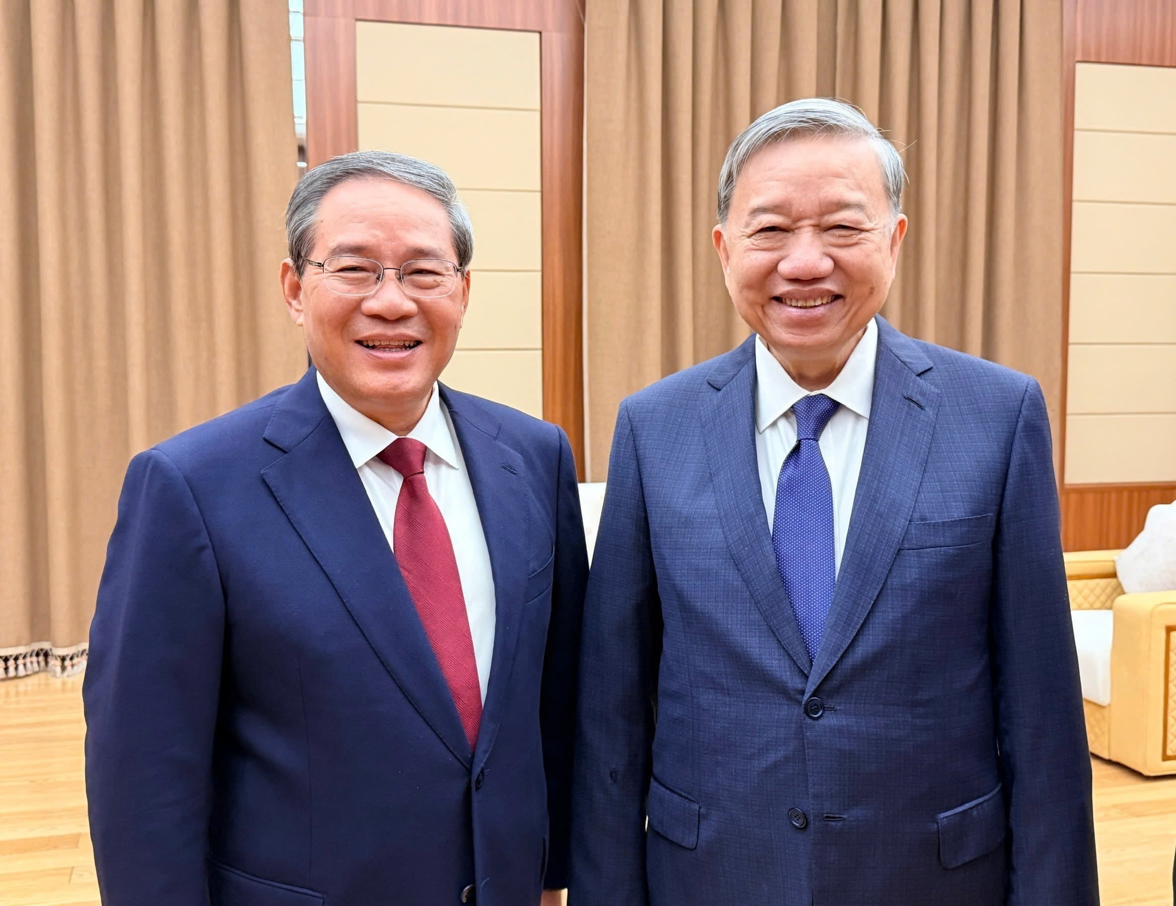 Le secrétaire général du PCV, To Lam (à droite), et le Premier ministre chinois, Li Qiang. Photo : VNA.