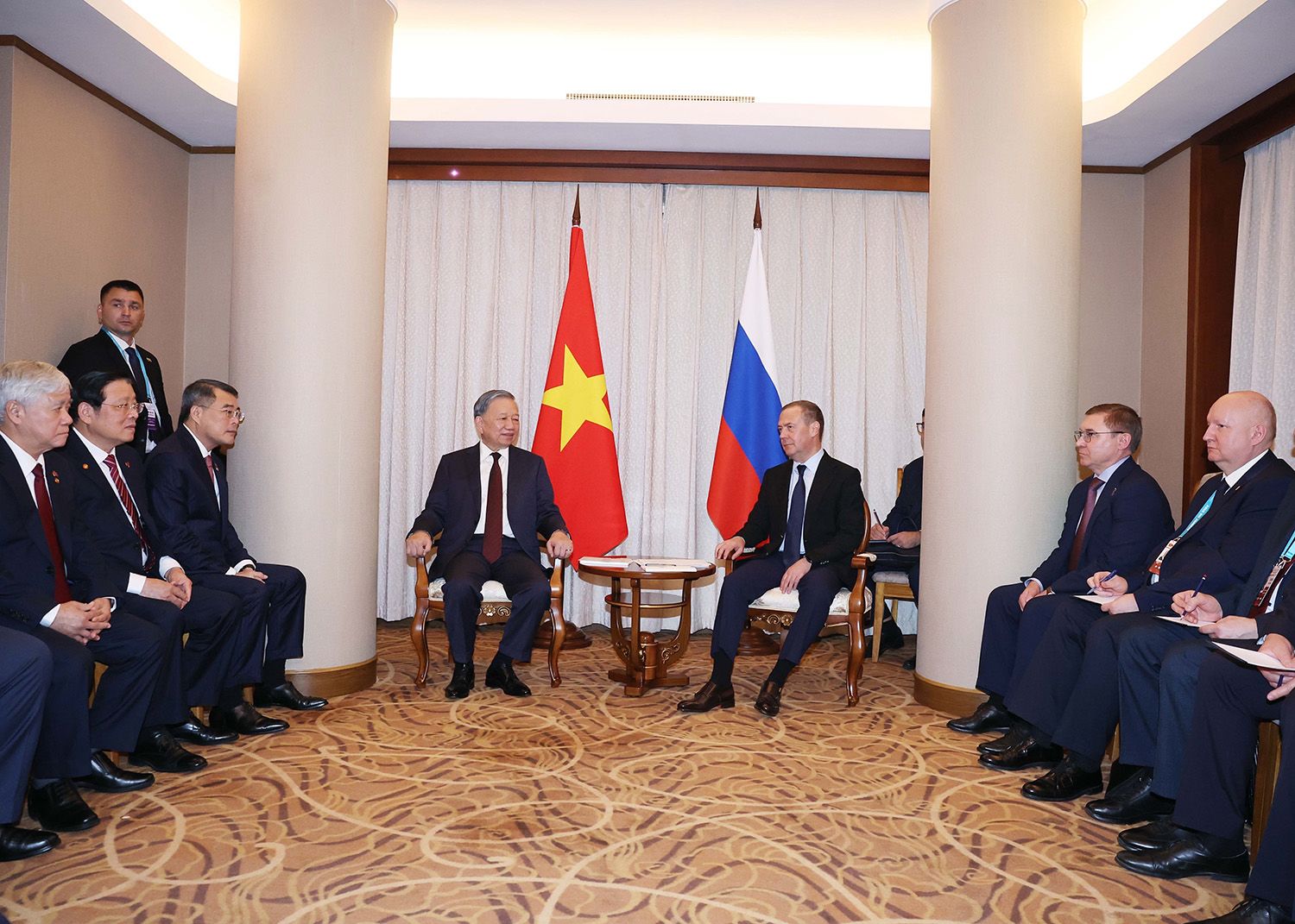Le secrétaire général du PCV To Lam et le président du Parti de la Russie unie et vice-président du Conseil de sécurité de la Fédération de Russie, Dmitri Medvedev. Photo : VNA.
