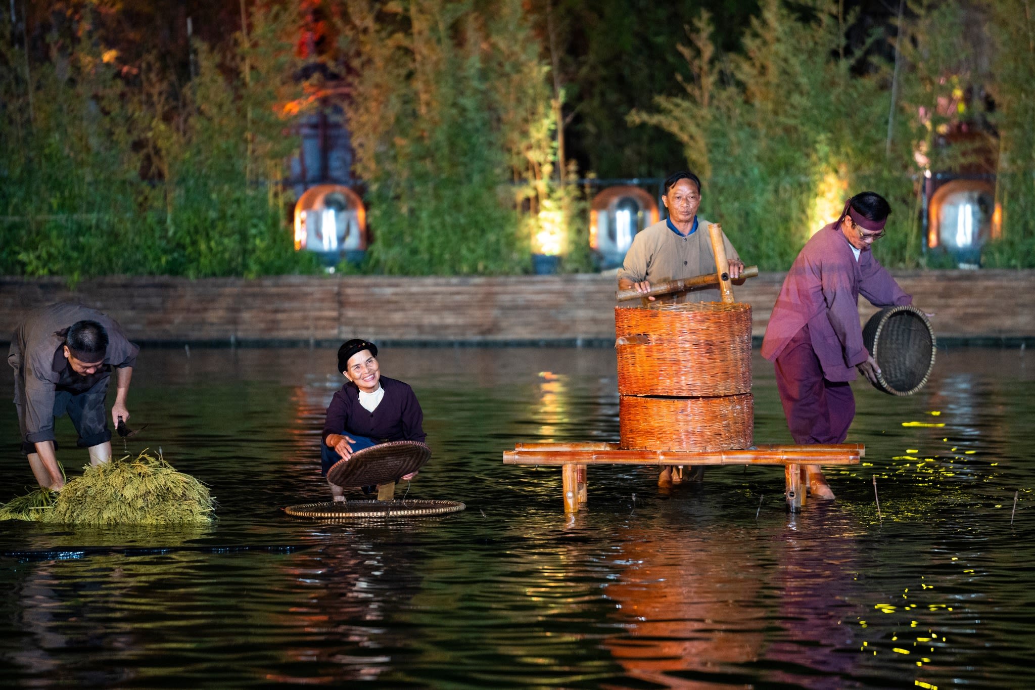 El espectáculo "La Quintaesencia del Norte" presentado en el lago Dinh Lang Da Phuc, en el distrito capitalino de Quoc Oai, es el primer escenario de "escena real" en Vietnam, cuyo objetivo es enaltecer la belleza de la cultura nacional.