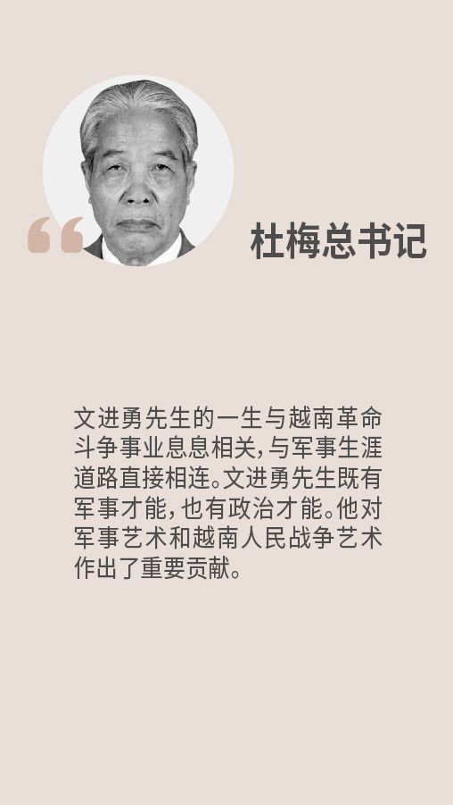 文进勇先生的一生与越南革命斗争事业息息相关,与军事生涯道路直接相连。文进勇先生既有军事才能,也有政治才能。他对军事艺术和越南人民战争艺术作出了重要贡献。