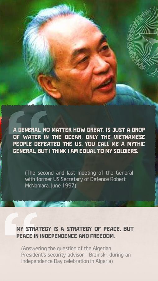 "General Vo Nguyen Giap is a general who exceled in both military strategy and politics. Both fields are intertwined and support each other; both are excellent: military - politics - economics – culture.