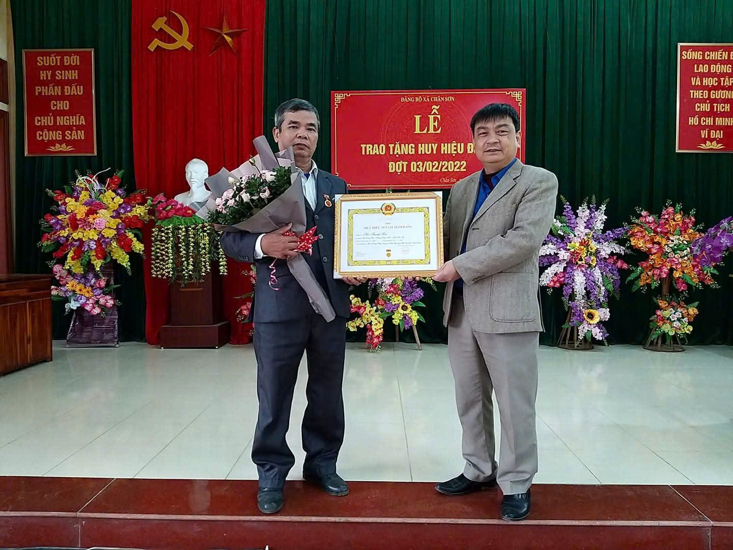 何清山先生荣获党徽。