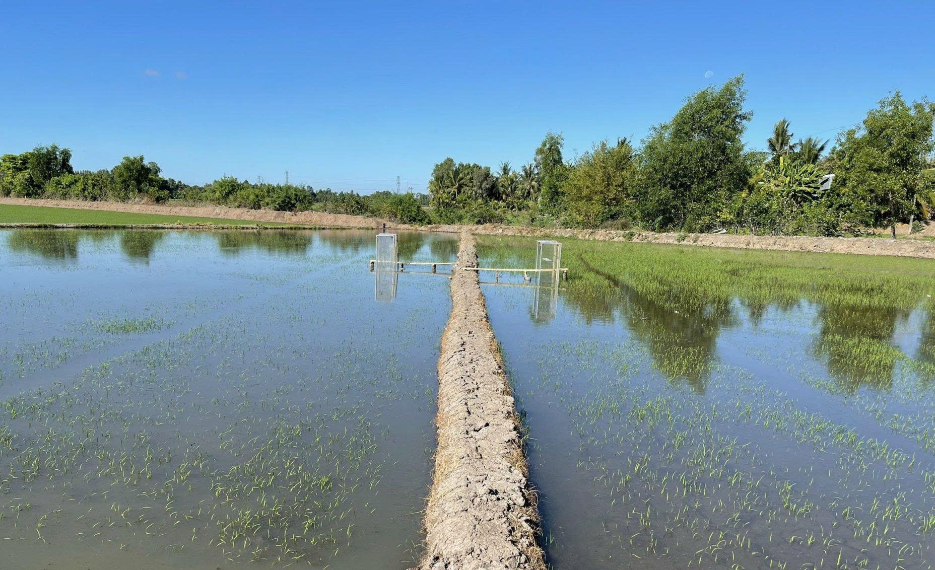 “Thay vì giữ nước liên tục trong ruộng lúa, phương pháp này sẽ luân phiên canh tác khô-ướt xen kẽ. Đây là kỹ thuật tưới nước cho lúa một cách khoa học, trong đó ruộng lúa được giữ khô một thời gian giữa các đợt tưới, thay vì luôn ngập nước như phương pháp truyền thống. Việc này giúp giảm sự phát thải khí metan, một loại khí nhà kính mạnh. Nhờ phương pháp này, người nông dân không chỉ giảm tác động tiêu cực đến môi trường mà còn giúp họ tiết kiệm nước, nâng cao hiệu quả sản xuất và giảm chi phí”, Trung nói.