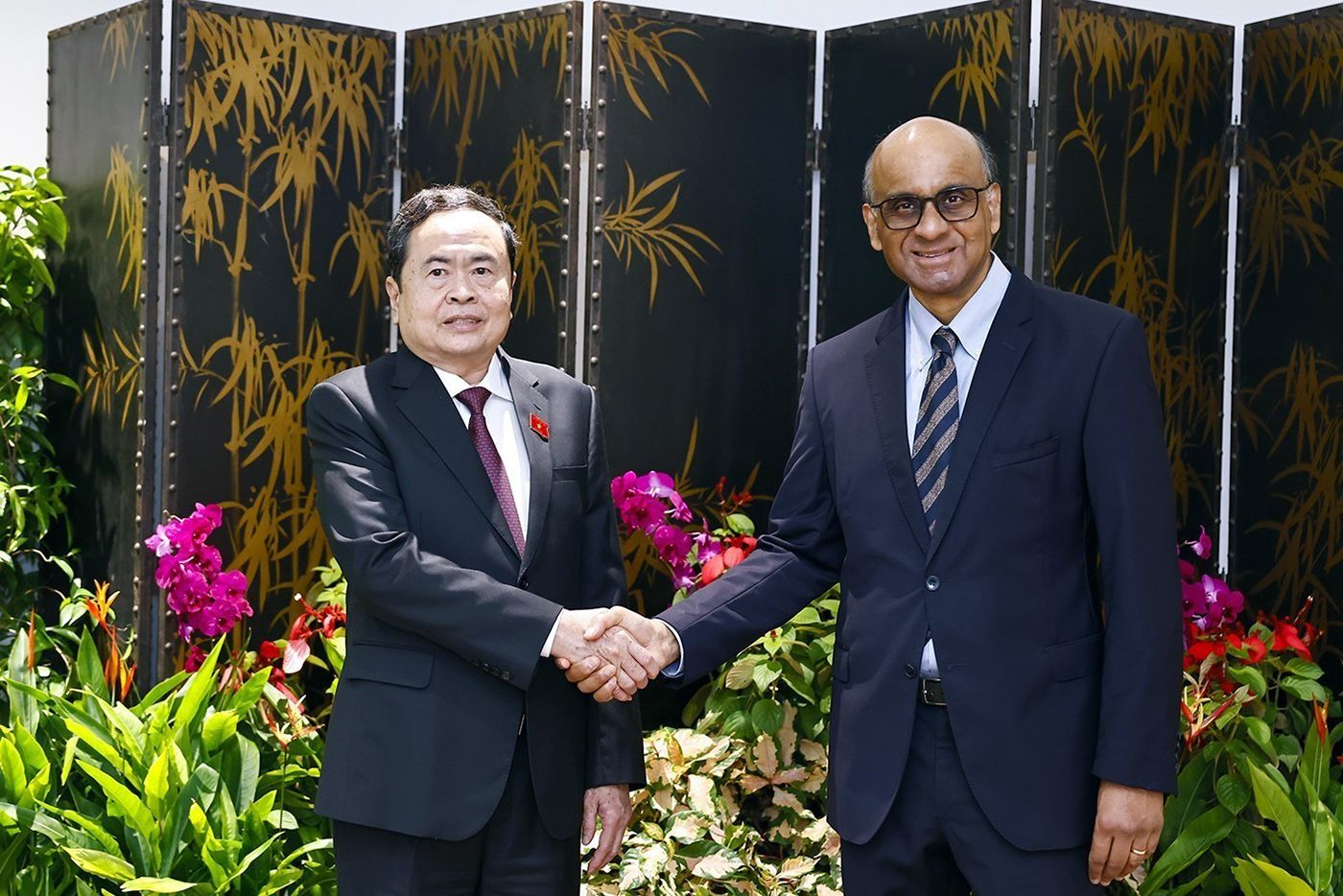 Le président de l’Assemblée nationale vietnamienne, Tran Thanh Man (à gauche), et le président singapourien, Tharman Shanmugaratnam. Photo : VNA.